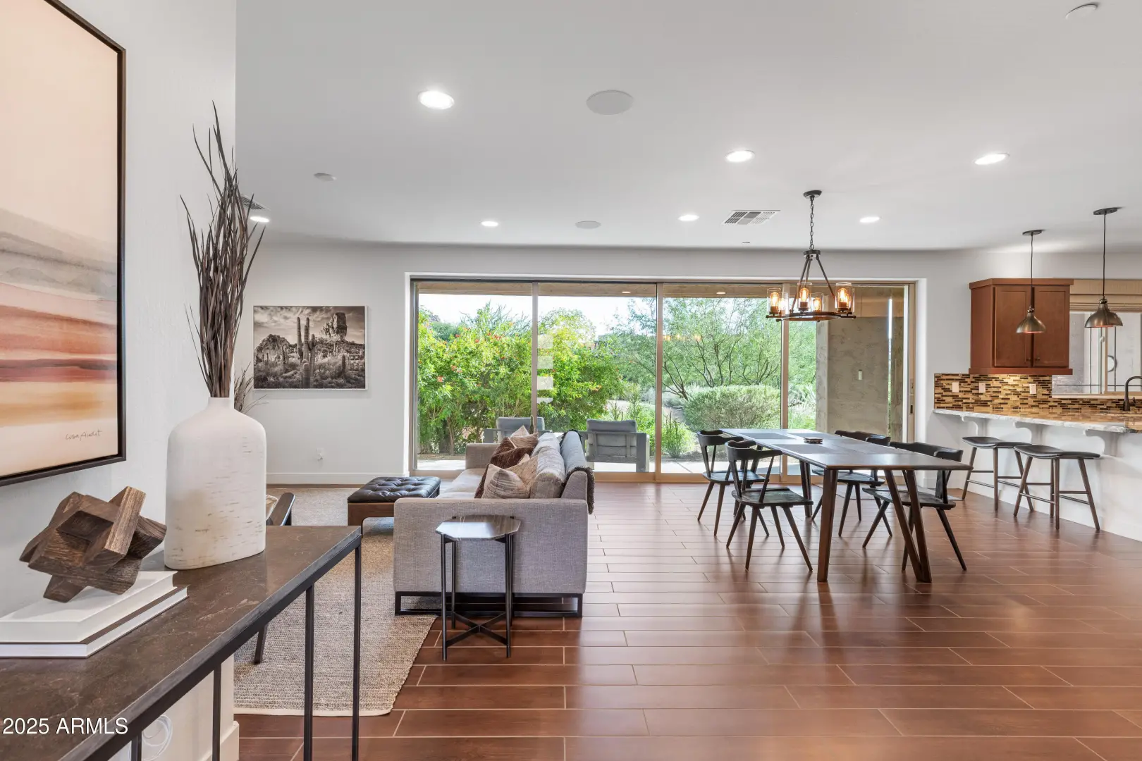 Located on the 9th fairway of the Monument Course at Troon North Golf Club, this former model condo showcases custom upgrades and a true lock-and-leave lifestyle. Expansive pocket sliding doors open to a south-facing patio with a cozy fireplace and stunning views of Pinnacle Peak. The open layout offers modern finishes, high ceilings, and seamless indoor-outdoor flow—perfect for enjoying the Scottsdale lifestyle in one of its most sought-after golf communities.