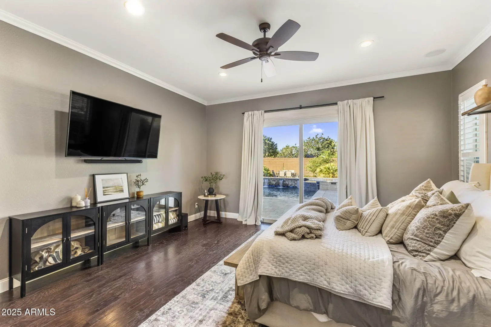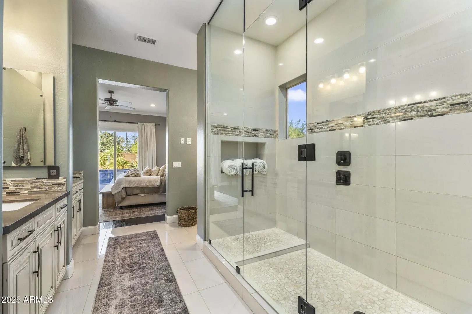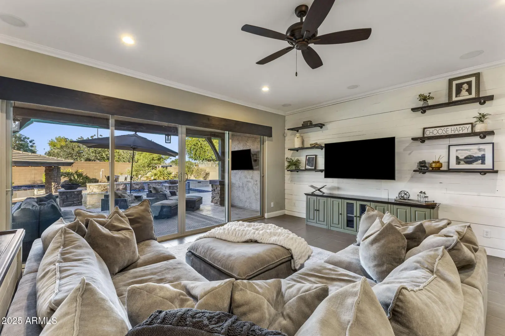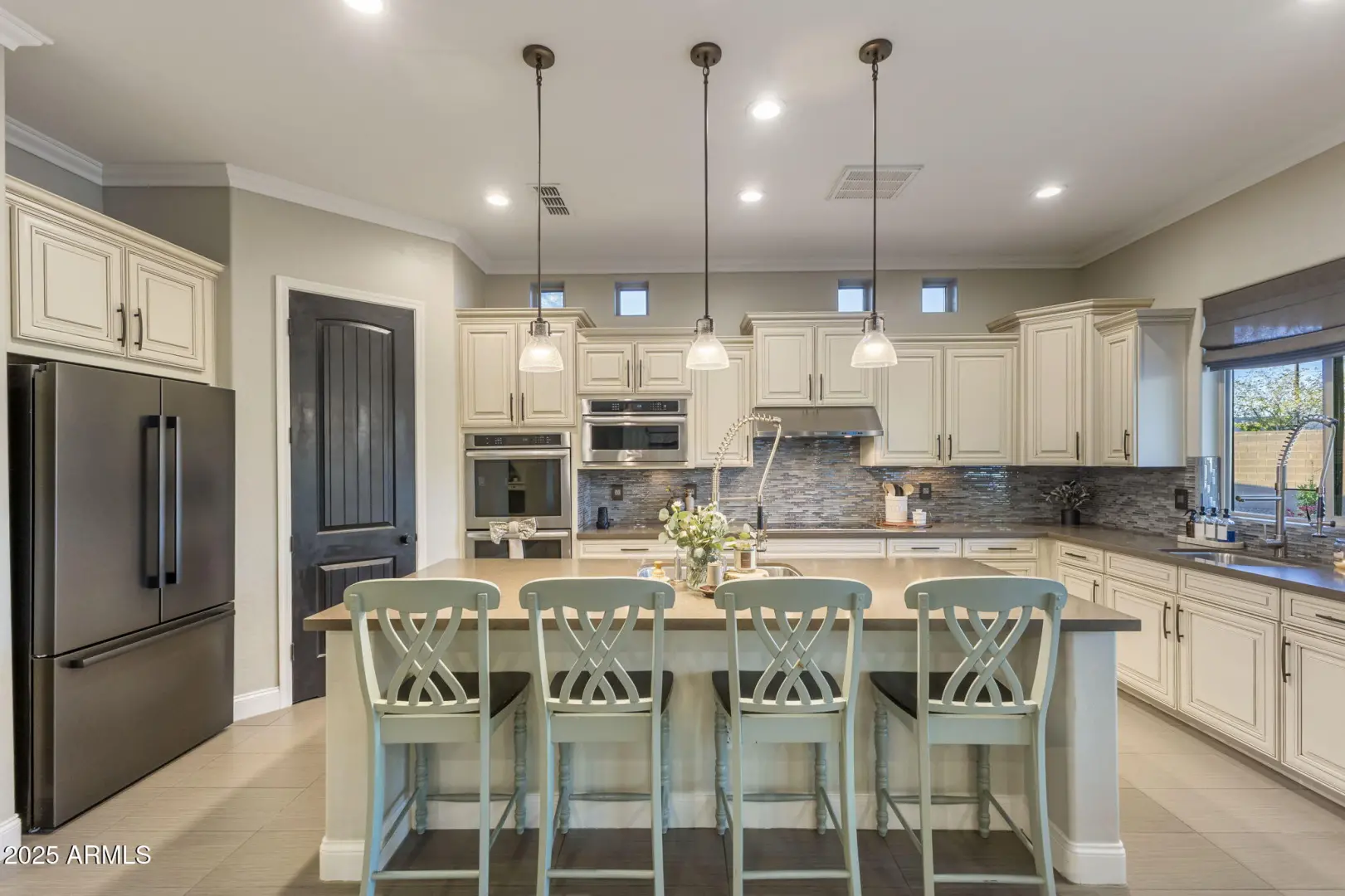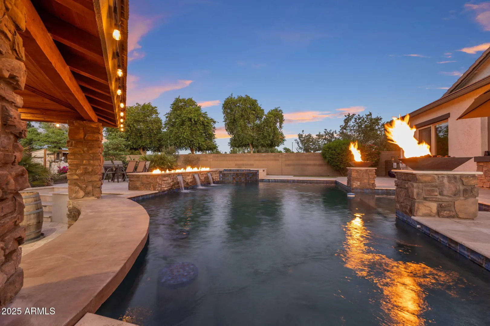 Tucked away on a private cul-de-sac lot in Gilbert's highly desired Velvendo community, this 4 bedroom, 3 bath home offers 2,826 sq. ft. of stylish living with a true balance of function and comfort. The open floor plan highlights a large great room with extended sliding glass door, perfect for indoor-outdoor living. A dedicated office and den (currently used as a workout room) provide flexible space for work and play. The chef's kitchen is designed with upgraded cabinetry, quartz countertops, a spacious island, double ovens, and a built-in microwave. The retreat-style primary suite offers dual vanities, a large walk-in shower, custom walk-in closet, and private exit to the backyard. Three additional bedrooms and two full bathrooms