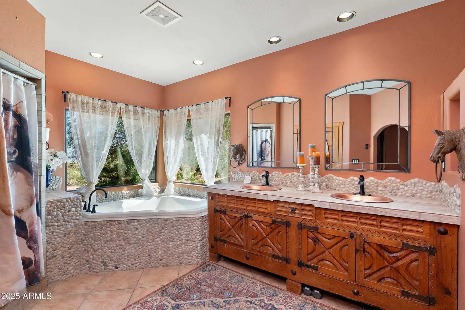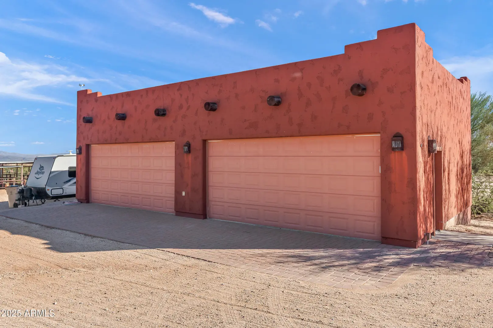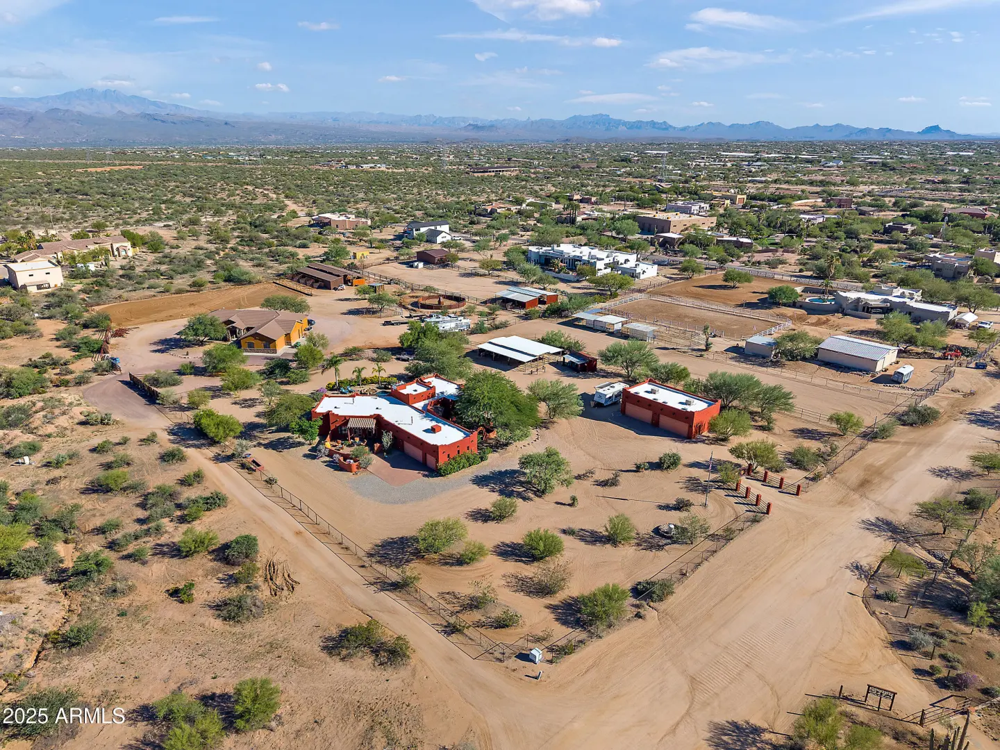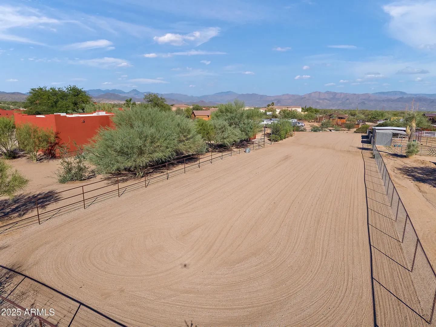 Embrace Western-inspired living on 2.5 acres with no HOA, a private well, and 360° Sonoran Desert views. Ride to trails from your 60' x300' arena, 6-stalls, and 8' x 20' tack room. The 3BR+bonus+office main home blends cowboy charm and modern upgrades - chef caliber kitchen, copper-accented baths, and a private outdoor space off each bedroom. Enjoy 800 sq ft of patio space and a pool with a fountain and Baja shelf. The two garages offer 7 bays, all insulated and cooled. This property is fully fenced with an automated gate. A remarkable property where every detail celebrates the best of Sonoran Desert living.