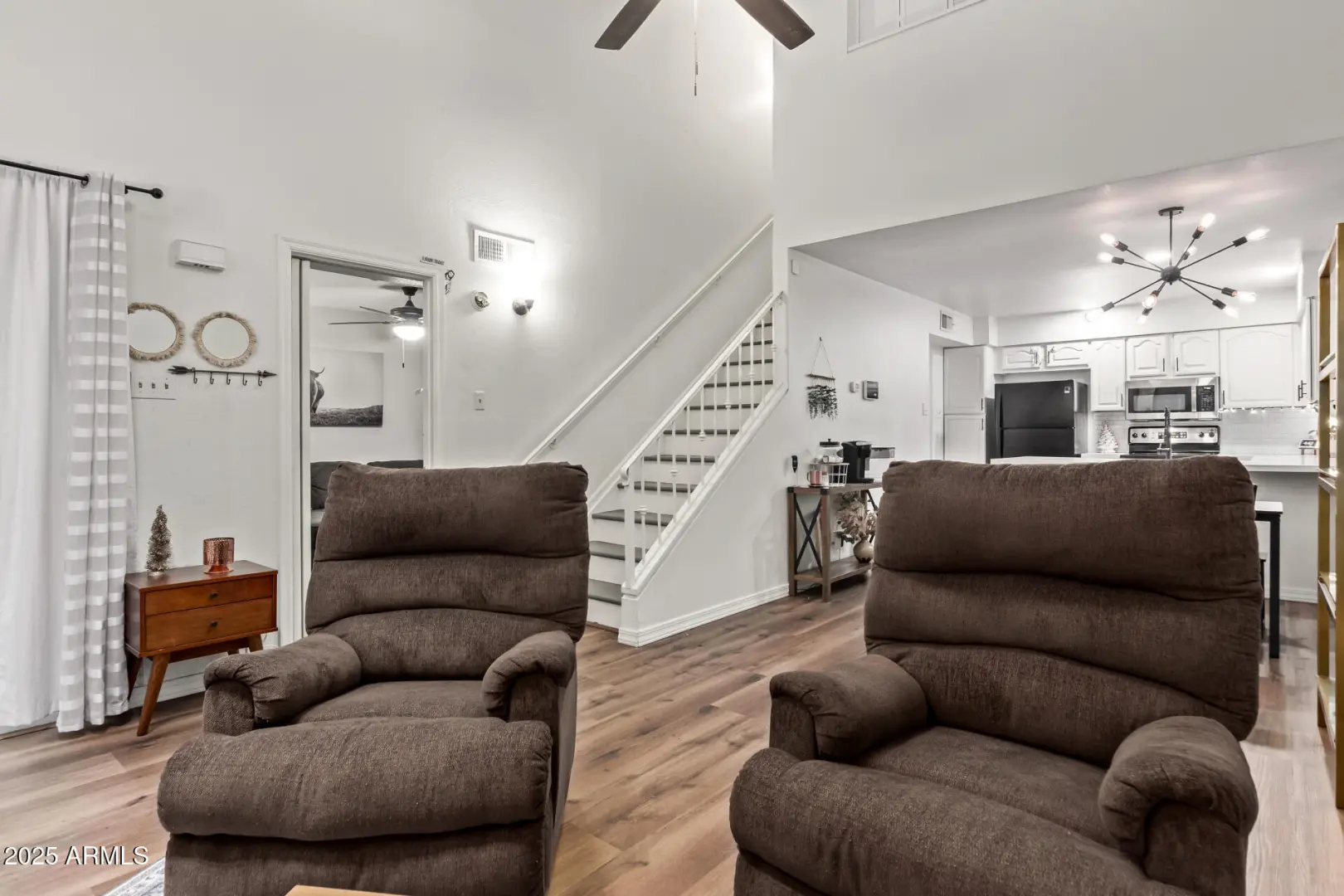 Welcome to this beautifully updated townhome in the highly sought-after Cliffs at North Canyon community in North Phoenix. This 3-bed, 2-bath property features vaulted ceilings, skylights, vinyl floors, fresh interior paint, & a cozy tiled fireplace for a warm, inviting feel. The open kitchen overlooks the family room, creating a true great-room layout perfect for everyday living. The downstairs primary suite includes mirrored closets and private patio access. Upstairs offers two additional bedrooms with newer carpet. Enjoy in-unit laundry, assigned covered parking directly out front, and access to two community pools & spas. Located minutes from the 101 and 51 freeways, top-rated PV schools, shopping, dining, & hiking—This home delivers great value in a gated & well-maintained community