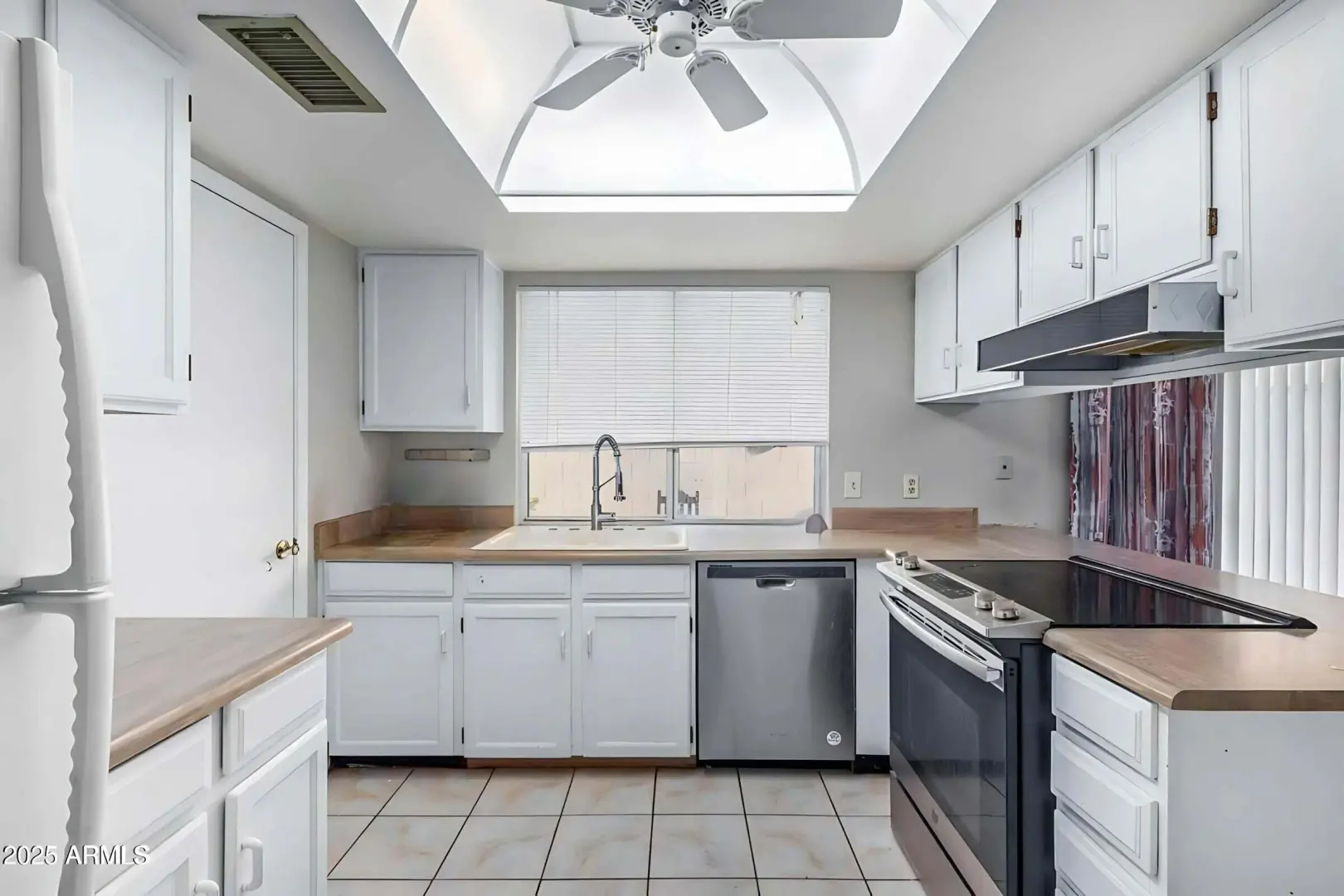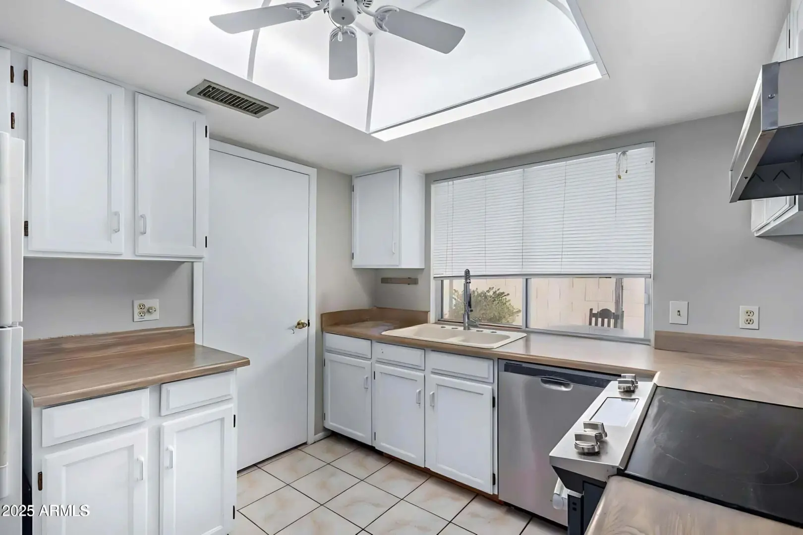 Charming townhome in Bellair Estates with solid bones and tons of potential! The bright great room features soaring ceilings, a cozy fireplace, and wood laminate flooring. The spacious kitchen opens to a large patio—perfect for entertaining or enjoying Arizona evenings. Both bedrooms are generously sized and offer flexibility for guests, home office, or personal retreat. You'll also love the two private, fenced-in patio areas that add great outdoor living space. Major bonus: a brand-new AC unit was installed in 2024. Located in a welcoming community with great amenities and easy access to I-17 and Loop 101—just minutes from Arrowhead Mall, shopping, and dining.