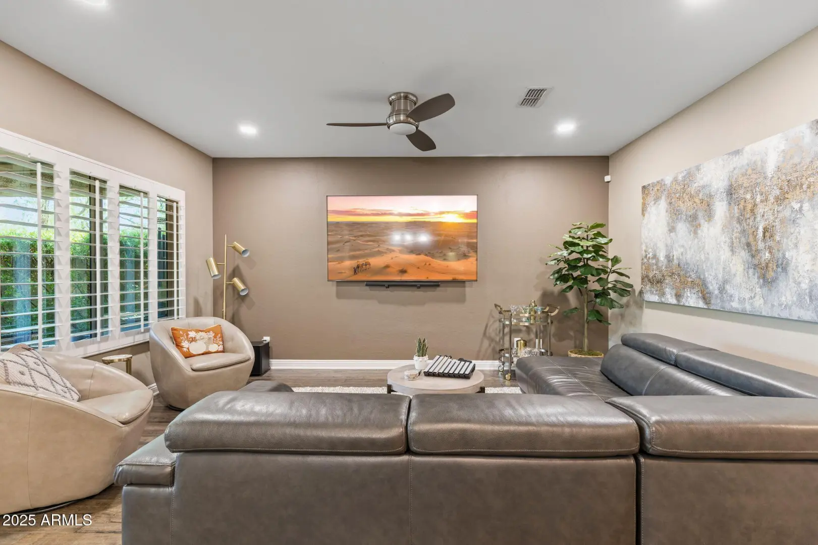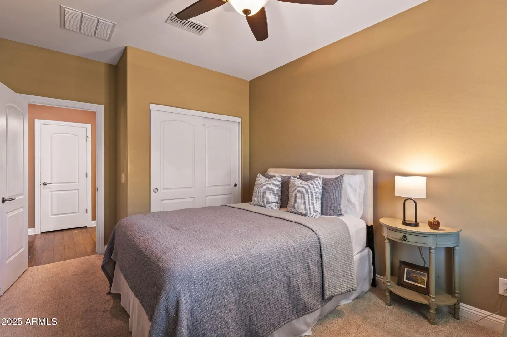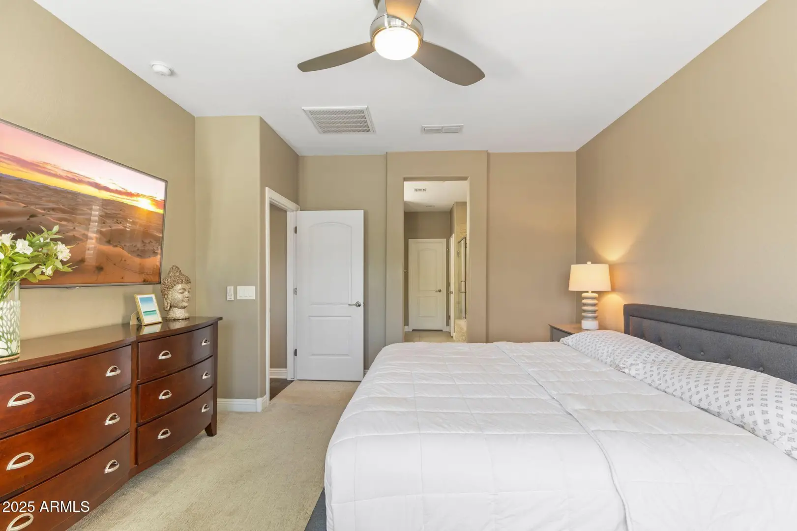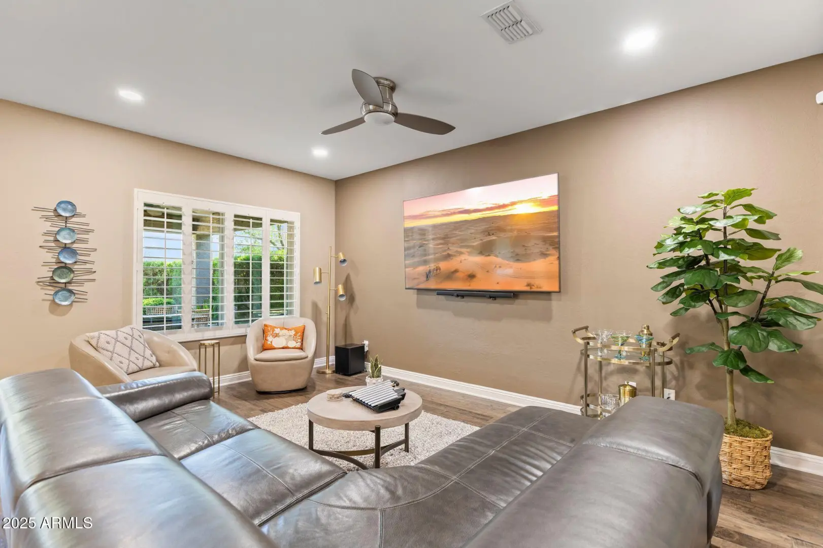 Located at the end of a quiet cul-de-sac in the prestigious, sought-after Fireside at Norterra community, this is the type of home you've been searching for: one that has been exceptionally cared for and thoughtfully upgraded throughout. Fully move-in ready with a new HVAC system (2024), water softener (2023), water heater (2025), washer/dryer (2021), and fresh exterior paint (2023). Inside features solid hardwood floors in all main areas (with new carpet in bedrooms 2021), 9 ft ceilings, plantation shutters, recessed lighting with dimmers, smart thermostat, and Ring security system. The open concept kitchen includes stainless steel appliances, gas range, and stacked stone backsplash, flowing into the main living area and separate formal dining room. The split bedroom floor plan