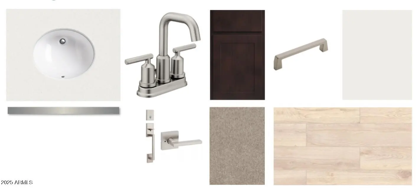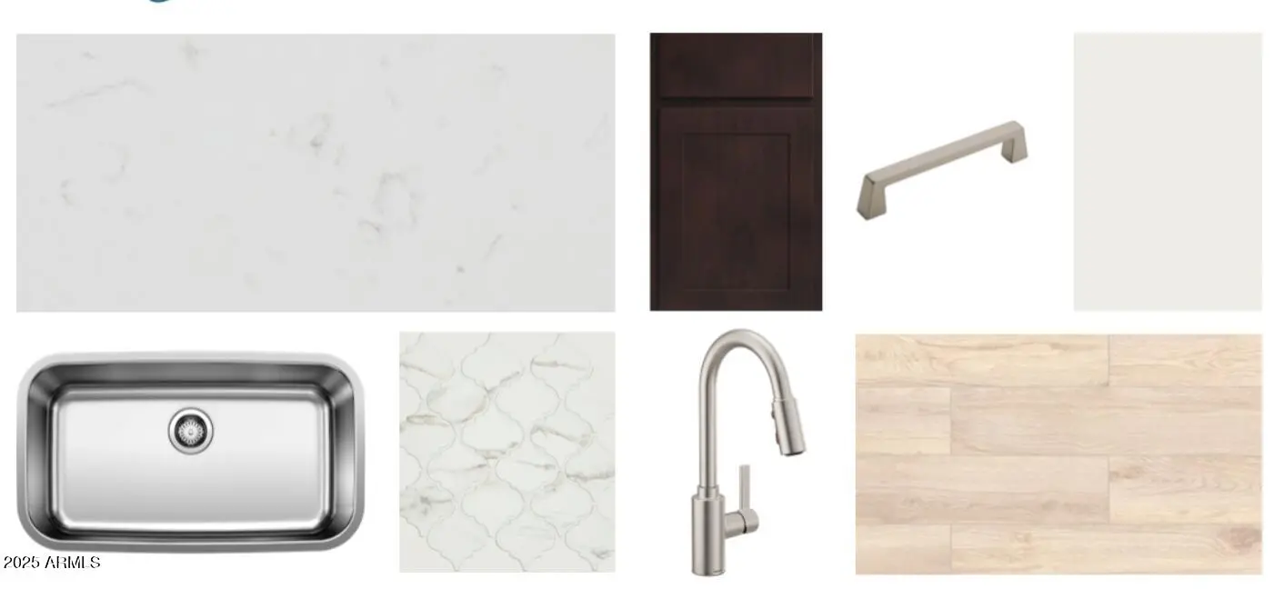 Take a look at this brand-new 3-bedroom, 2-bathroom home located in the beautiful community of Wales Ranch in San Tan Valley. Designed with comfort and functionality in mind, it features a spacious layout enhanced by a large 4-panel sliding door that opens to your private backyard—perfect for relaxing or entertaining. The primary suite offers double sinks, an enlarged shower and walk-in closet to simplify your morning routine. This home also includes 8-foot interior doors, a rough-in for a soft water loop, and comes complete with a washer, dryer, refrigerator, and blinds throughout. Stylish dark 42'' cabinets, granite countertops, and a matching backsplash from the Roosevelt collection pair beautifully with wood-style ceramic tile flooring, creating a seamless, modern look.