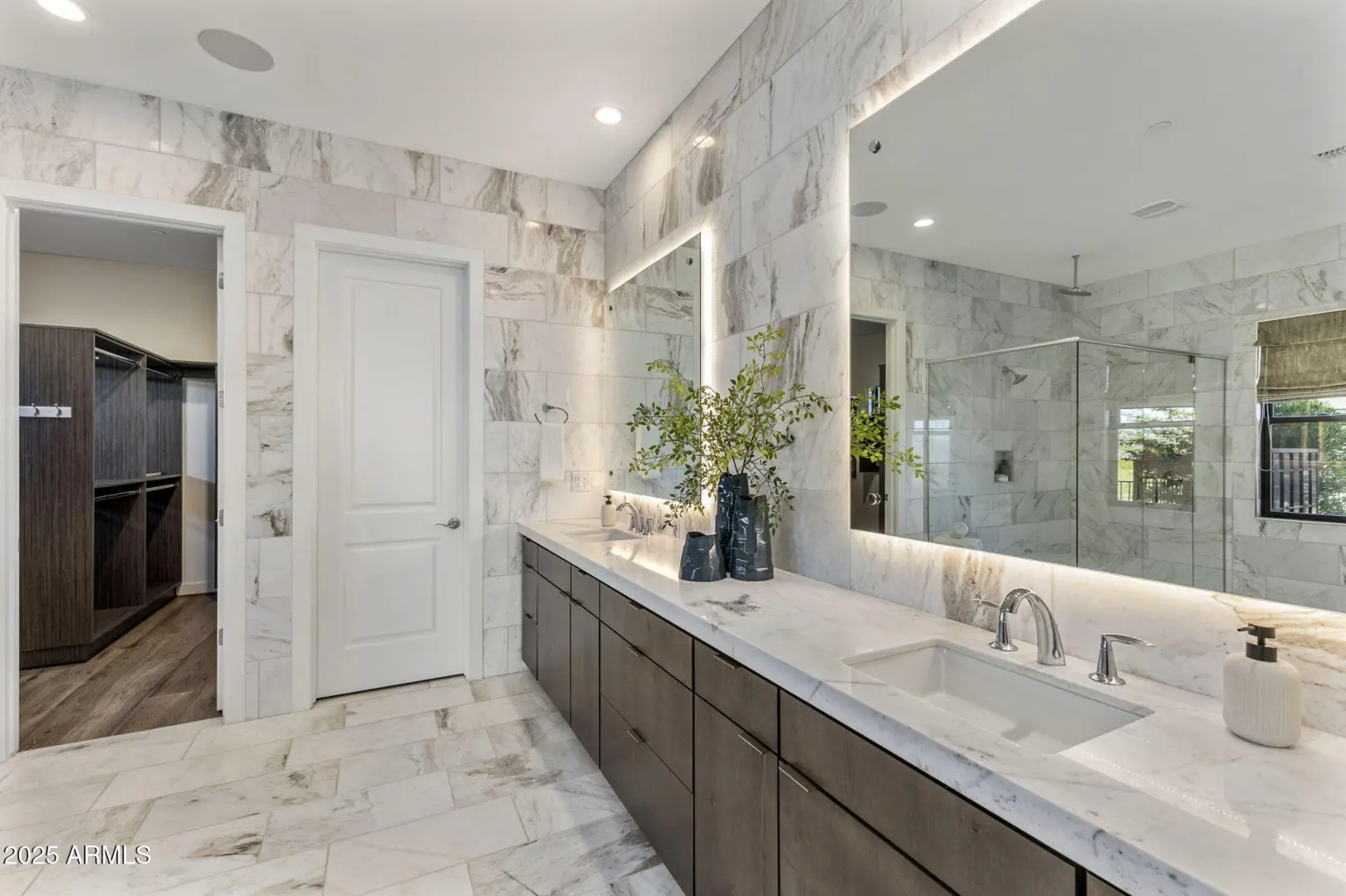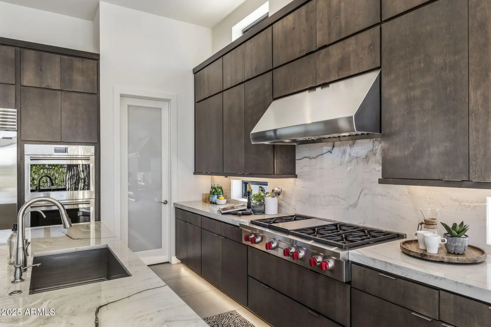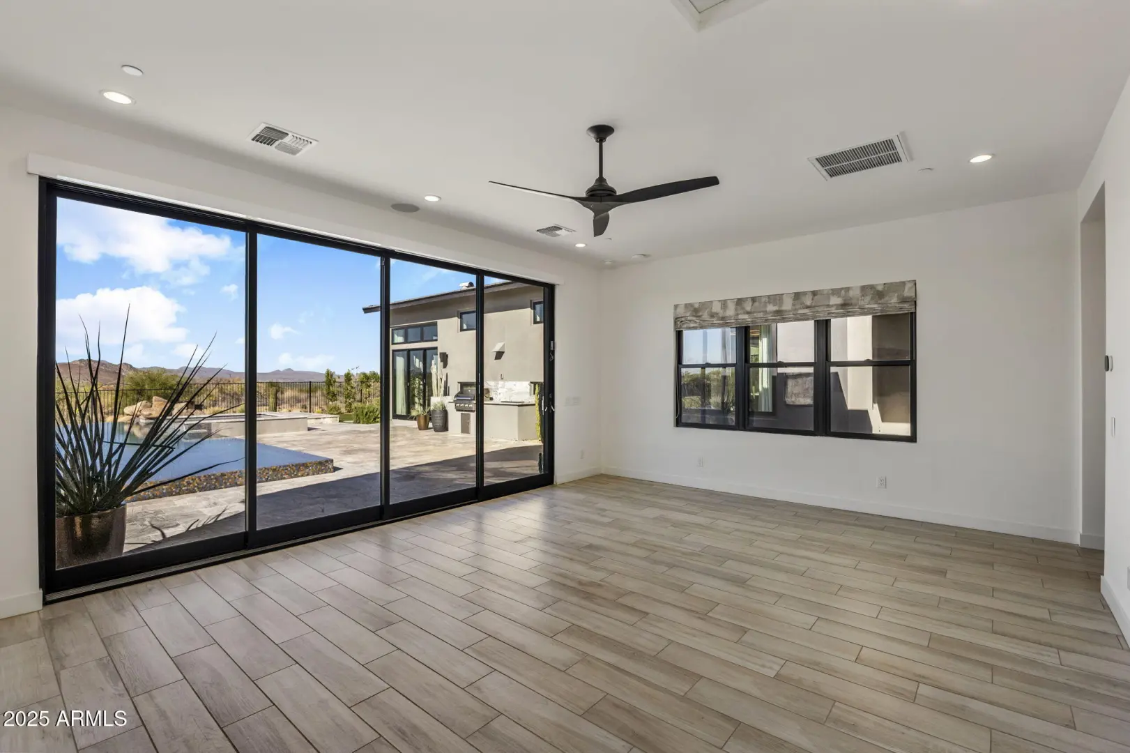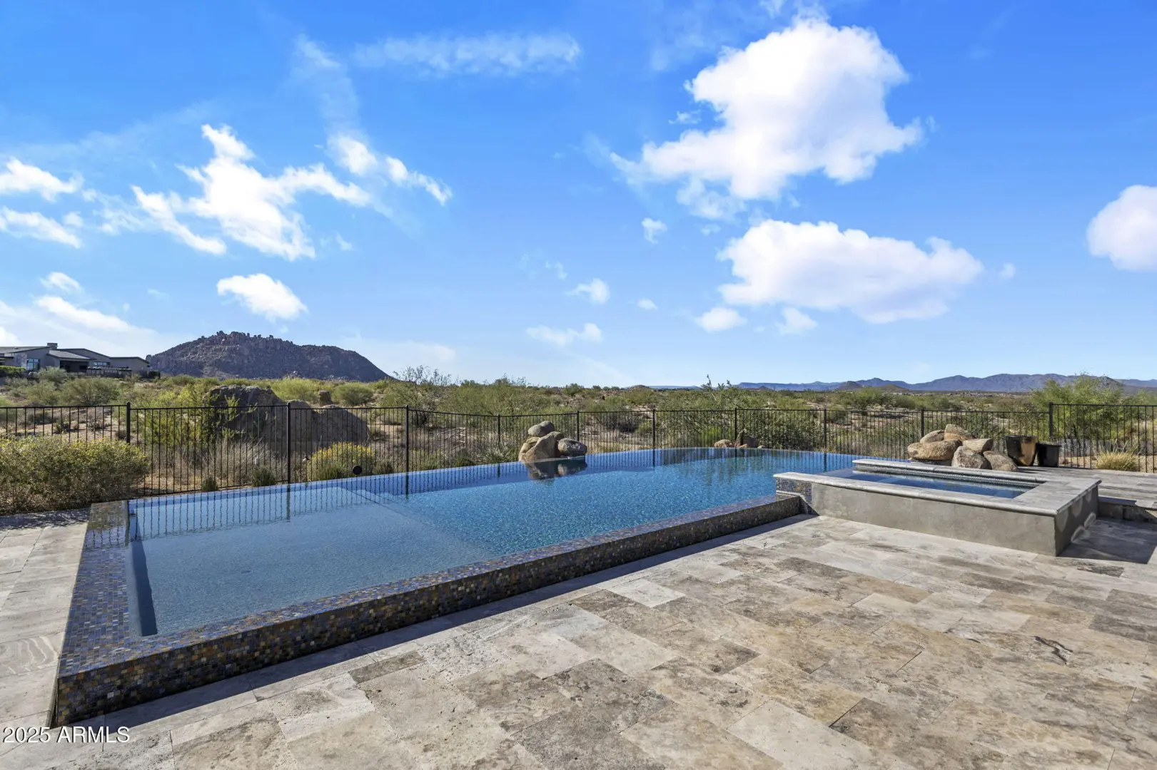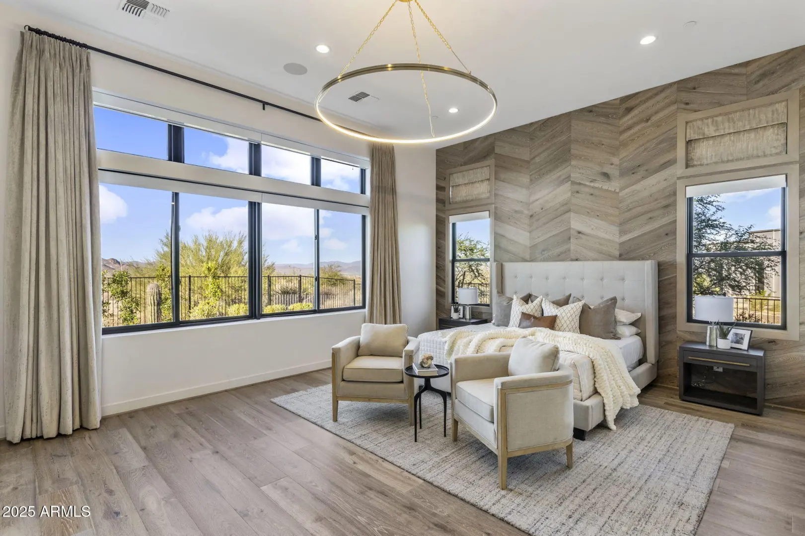 Nestled in the exclusive guard-gated community of Sereno Canyon, this newer single-level residence captures the essence of luxurious modern desert luxury. Framed by the dramatic McDowell Mountains and surrounded by pristine desert landscape, the home blends contemporary architecture with timeless design, creating a serene retreat just minutes from Scottsdale's finest dining, shopping, and golf. Step inside to soaring ceilings, expansive windows, and an open-concept floor plan that floods the interiors with natural light. The spacious great room flows seamlessly into a chef's kitchen, where sleek cabinetry, premium appliances, and a generous island make entertaining effortless. Multiple living and dining spaces provide flexibility for both grand gatherings and intimate evenings at home.