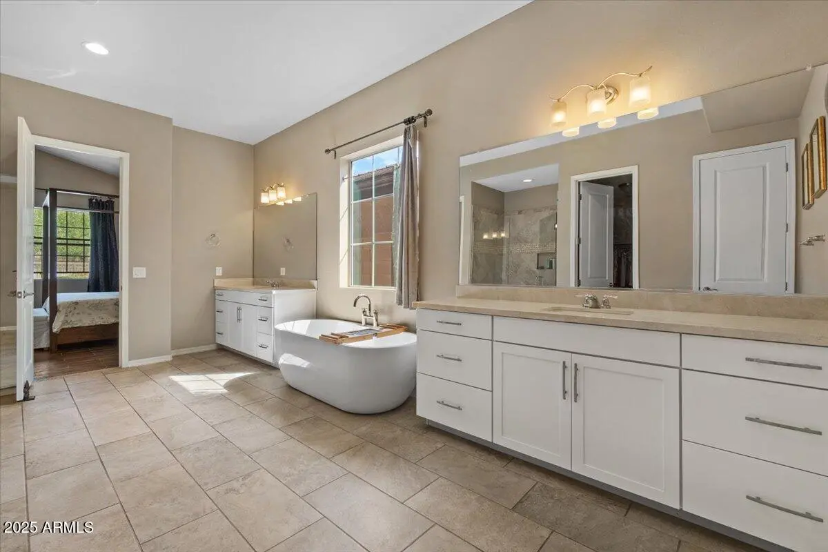 Discover a delightful blend of modern design and luxurious comfort at 2926 East Minnezona Avenue, Phoenix, AZ. This stunning 4-bedroom, 5-bathroom home spans 3,208 square feet, nestled on a generous 7,150 square foot lot. As you step inside, the open floor plan welcomes you with contemporary elegance, featuring both tile and carpeted floors that guide you through the spacious living areas. The heart of this home lies in its gourmet kitchen, equipped with sleek cabinetry and high-end appliances, perfect for culinary enthusiasts. Beyond the main living areas, the upstairs unveils a versatile loft space, complete with a full bathroom and closet. This area is perfect for an entertainment zone or a guest suite, offering endless possibilities for customization.