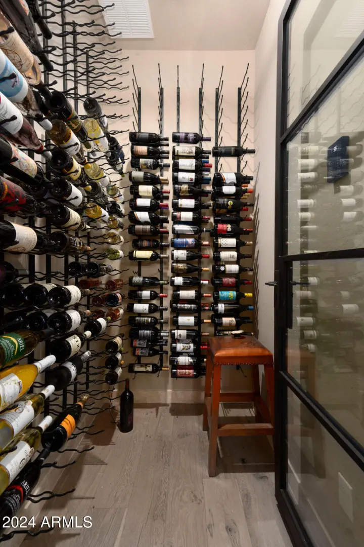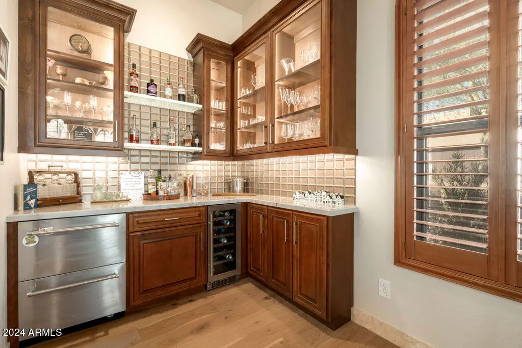 Beautifully remodeled home with new roof, garage doors, and a fully updated pool and a stunnig detached casita. Fresh exterior paint adds curb appeal, while inside features include custom wood accent beams, a redesigned fireplace and bar, and a 500-bottle temperature-controlled wine cellar. The kitchen and baths have new cabinetry and granite countertops. The split floor plan offers privacy, and the detached casita with kitchenette is perfect for guests or multi-gen living. Enjoy stunning sunsets over Black Mountain from the backyard, complete with a fire pit and waterfall pool. Located near the McDowell Sonoran Preserve with over 175 miles of hiking and biking trails—this home blends luxury upgrades with Arizona's outdoor lifestyle.