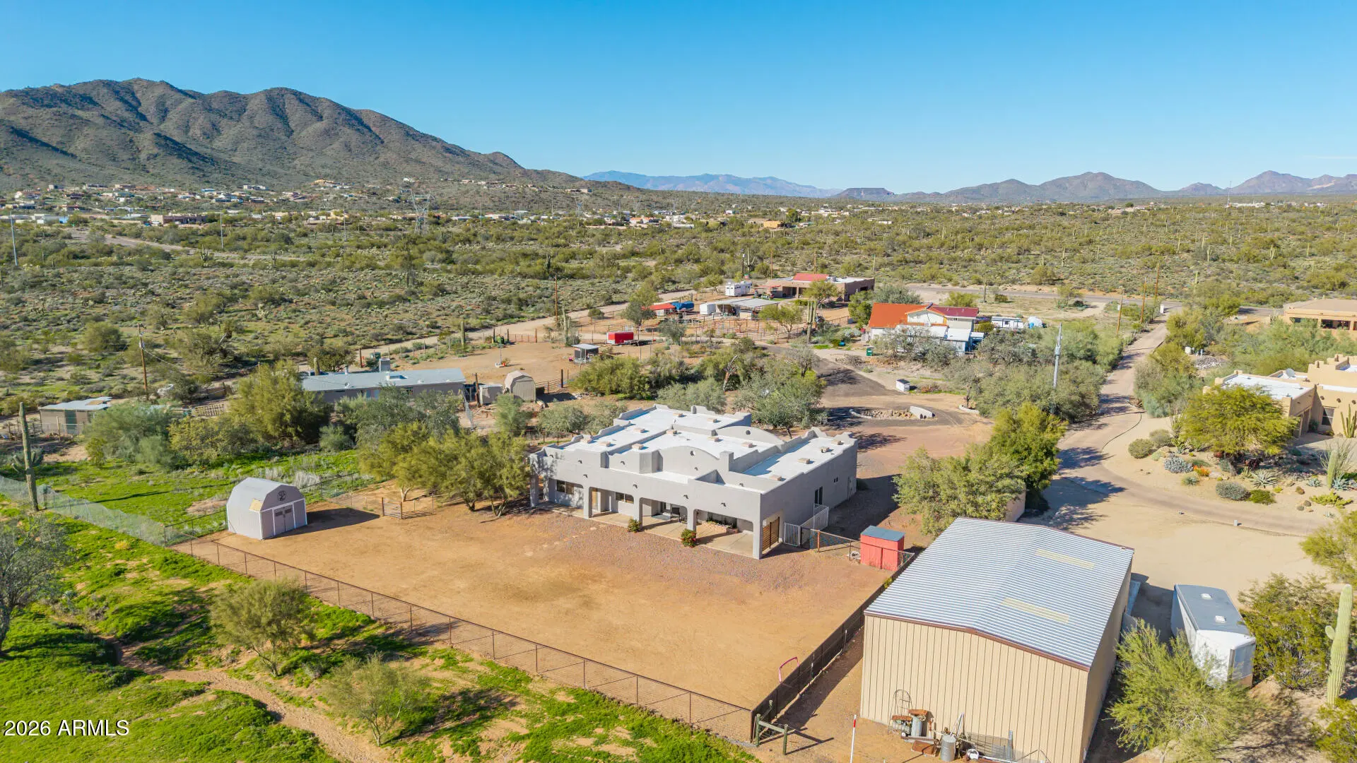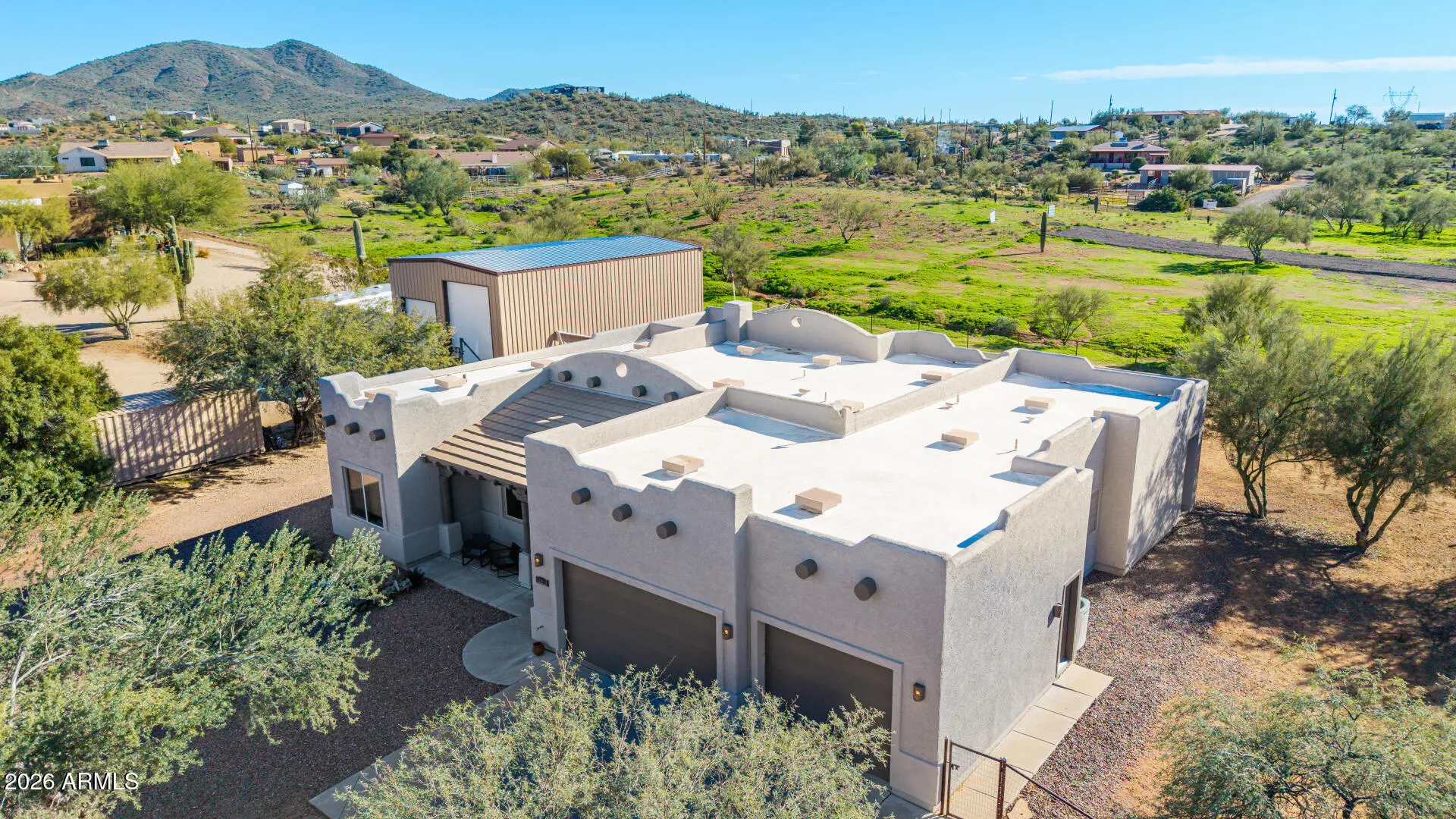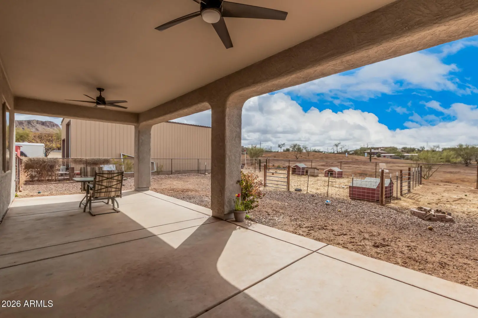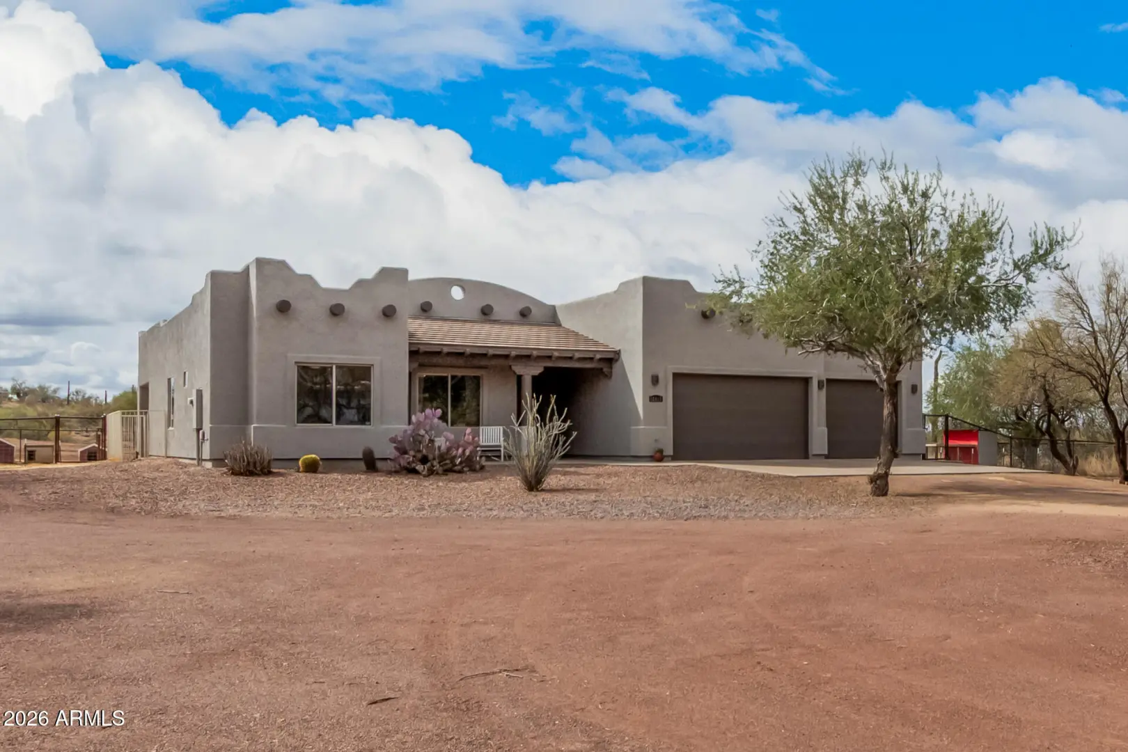 Space. Privacy. Possibility. This is the one! This is the Arizona lifestyle buyers wait for. Thoughtfully positioned on over an acre of open desert land, this beautifully crafted Territorial-style residence offers the rare combination of authenticity, comfort, and space that defines true desert living. From the moment you arrive, the home feels grounded, intentional, and inviting. Inside, the layout flows effortlessly, designed for real life. Natural light create an atmosphere that feels calm, expansive & the main living space, perfect for cool desert evenings and effortless entertaining. Outside, a full-length covered patio extends your living space and overlooks a freshly landscaped, wide-open backyard—ready for a pool, guest house, equestrian use, or a custom outdoor oasis.