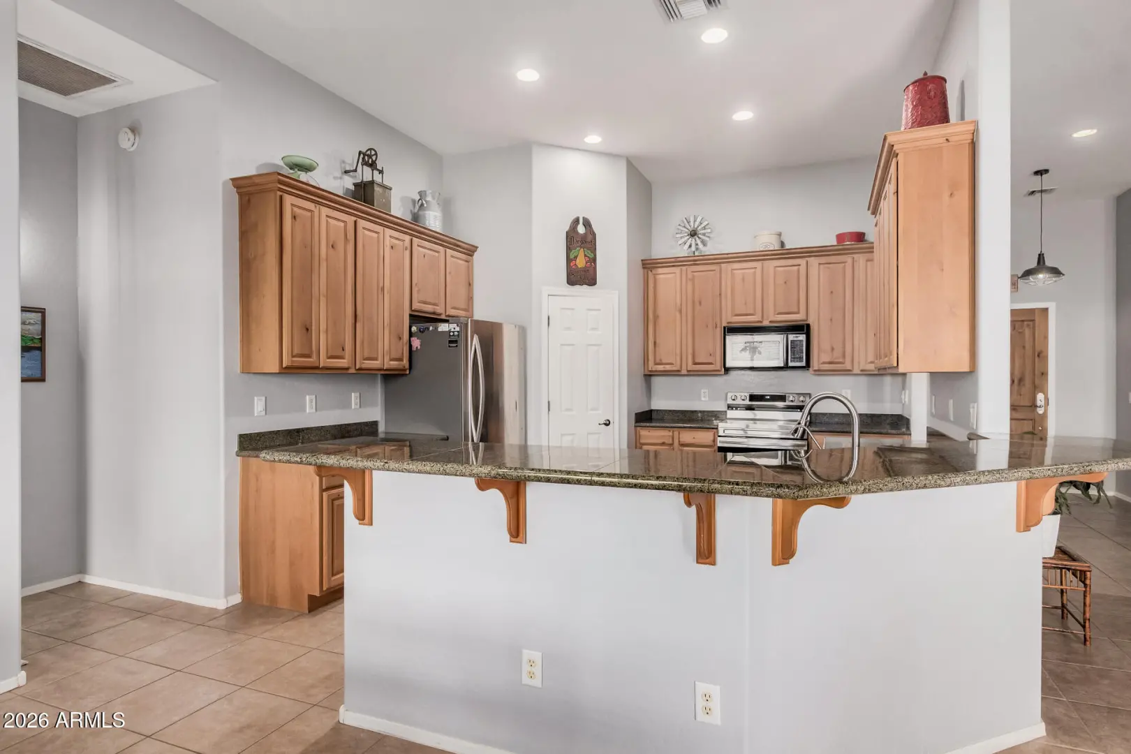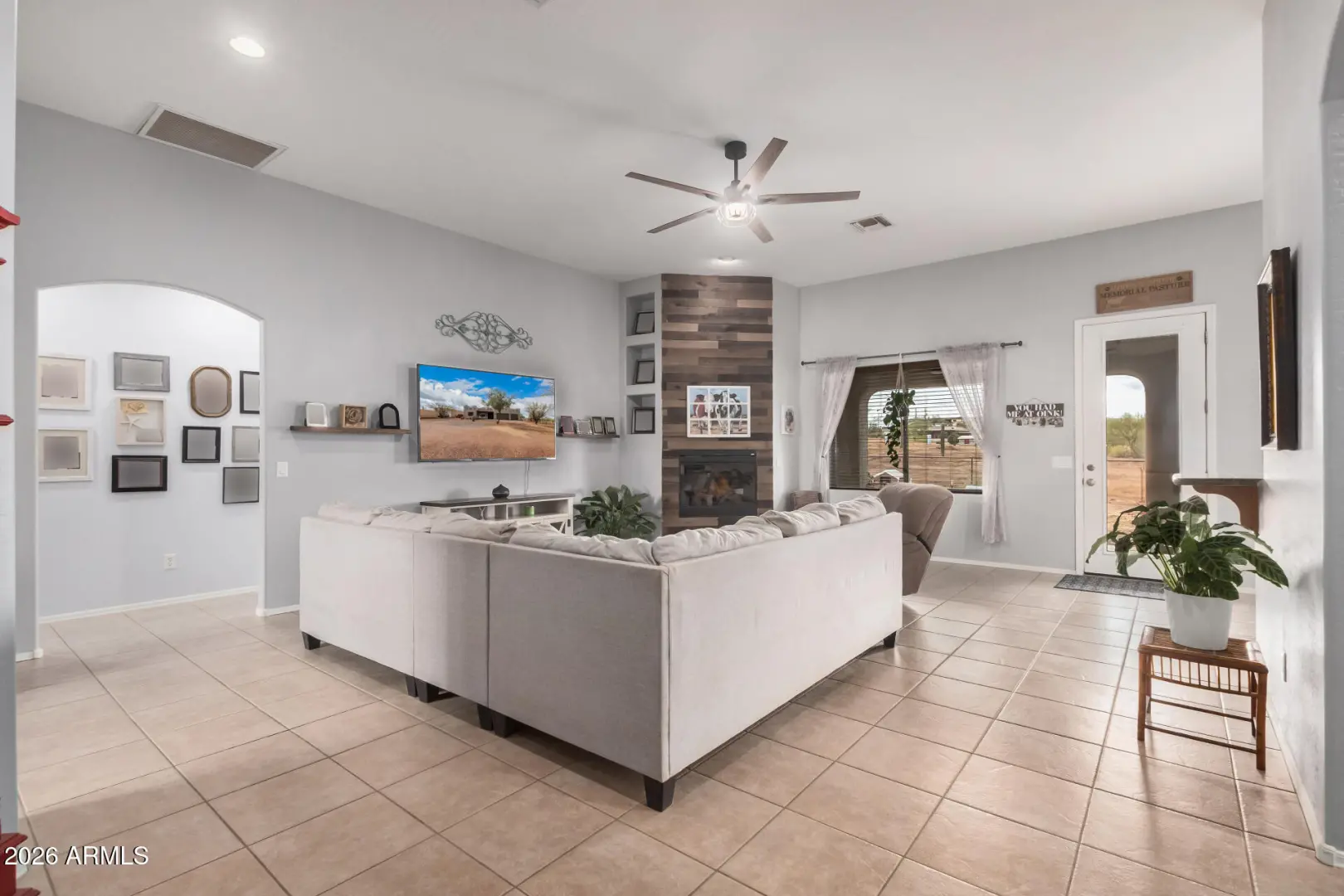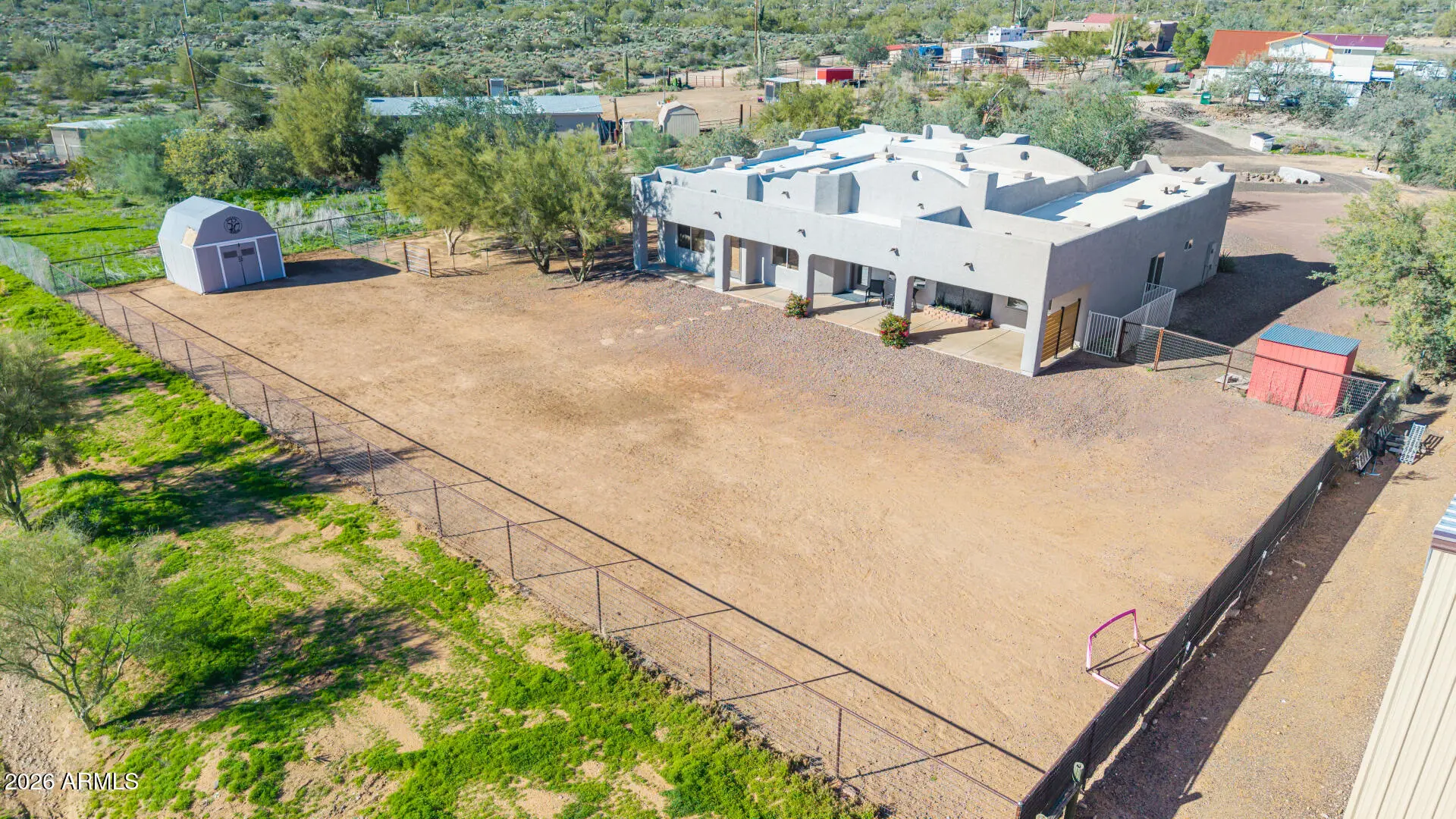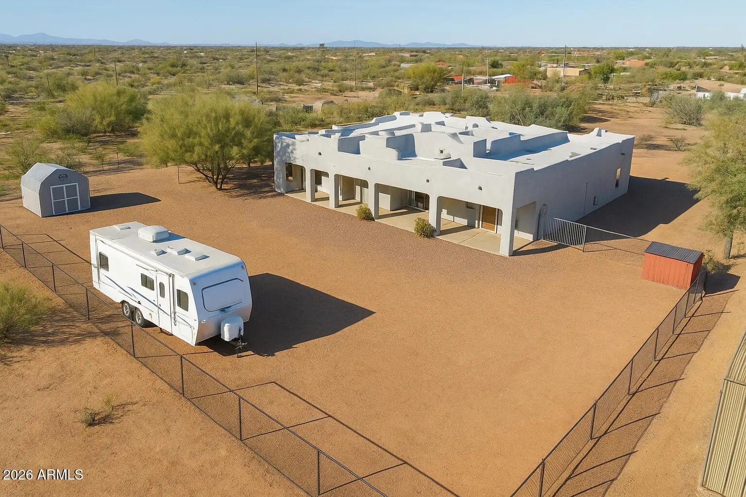Space. Privacy. Possibility. This is the one! This is the Arizona lifestyle buyers wait for. Thoughtfully positioned on over an acre of open desert land, this beautifully crafted Territorial-style residence offers the rare combination of authenticity, comfort, and space that defines true desert living. From the moment you arrive, the home feels grounded, intentional, and inviting. Inside, the layout flows effortlessly, designed for real life. Natural light create an atmosphere that feels calm, expansive & the main living space, perfect for cool desert evenings and effortless entertaining. Outside, a full-length covered patio extends your living space and overlooks a freshly landscaped, wide-open backyard—ready for a pool, guest house, equestrian use, or a custom outdoor oasis.