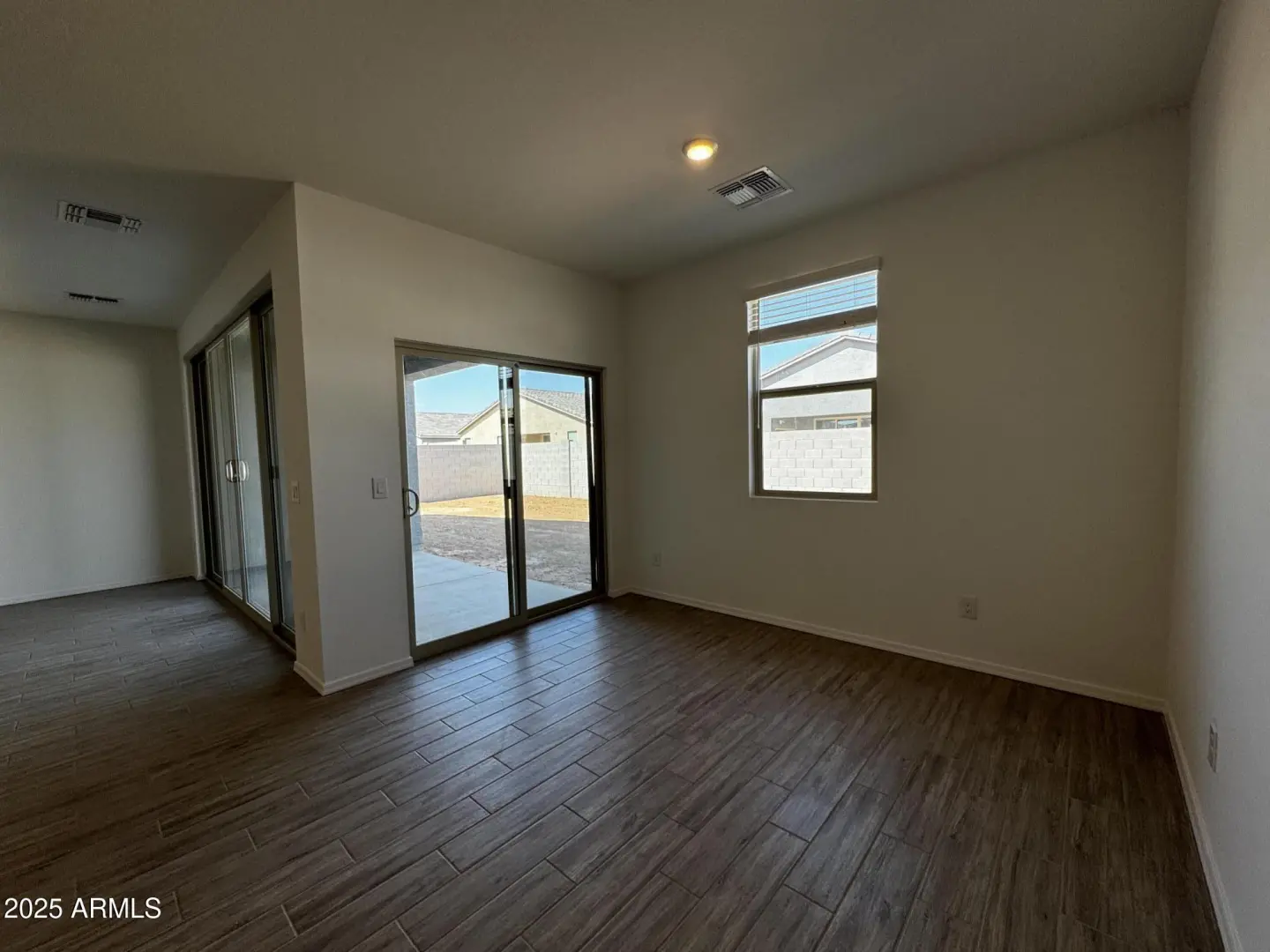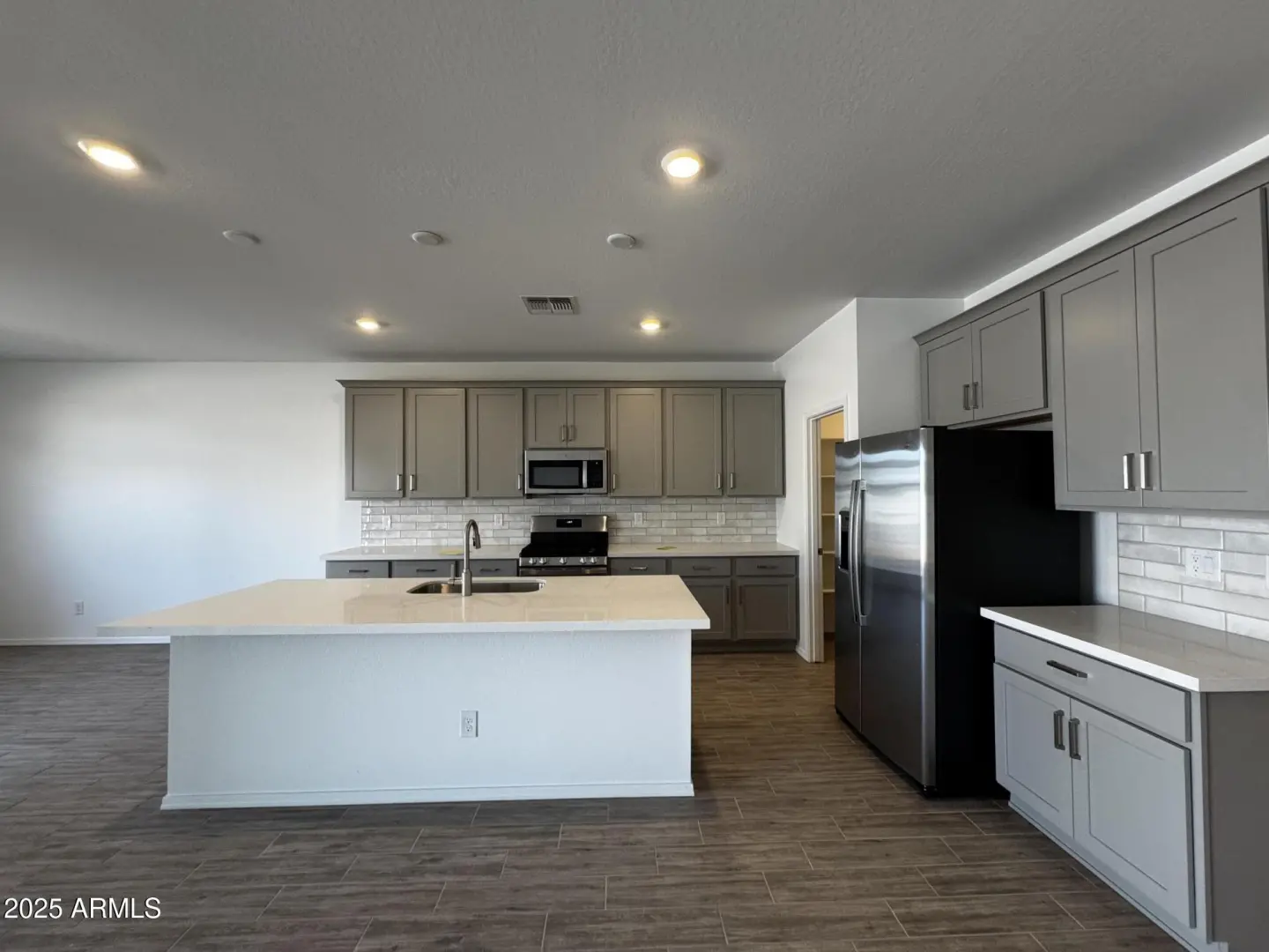 Welcome to your Dream Single-Story RV Garage Home! This Ruby RV Garage brand-new construction home plan boasts charming farmhouse architecture in the front, blending seamlessly with its surroundings. With 2,173 square feet of designer-curated living space, this gem offers a place of casual comforts and airy style. The spacious open-concept floor plan has three bedrooms, a large den, and 2.5 bathrooms. You'll love the magnificent four-panel center siding glass door, bathing the area in sunlight, and the 6 x 24 Plank Tile wood-look floors throughout the main living areas, offering elegance and easy maintenance. A chef's delight, the kitchen delivers in every way with White Sand Quartz countertops, a stainless steel single bowl under-mount sink, a stainless steel Gas range, a large