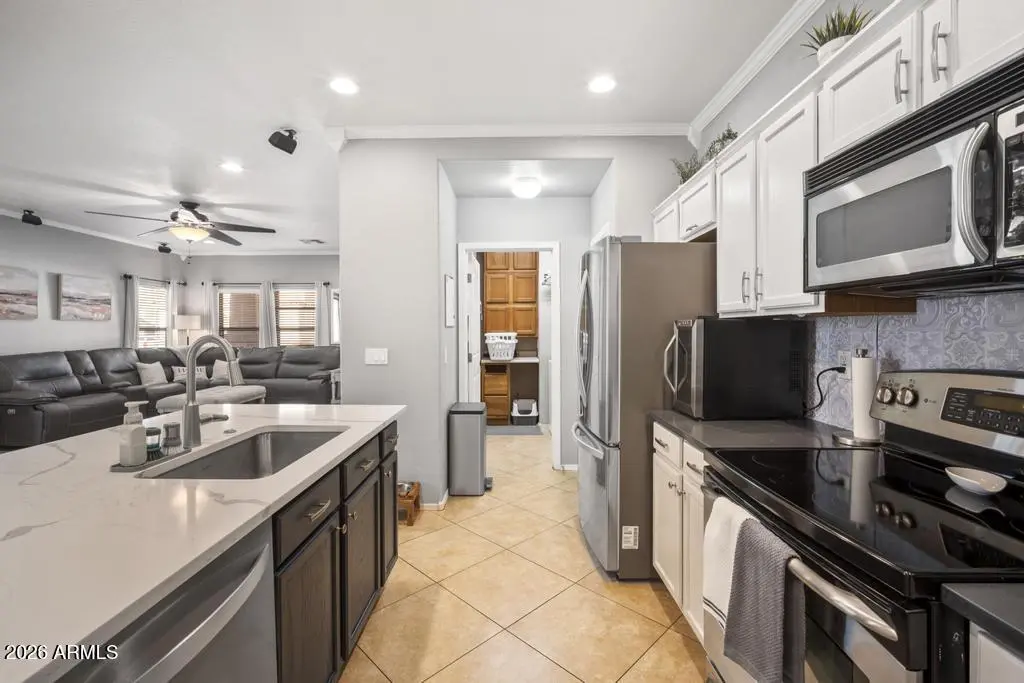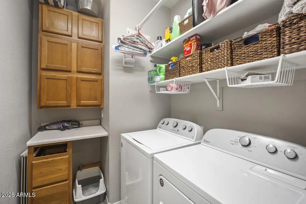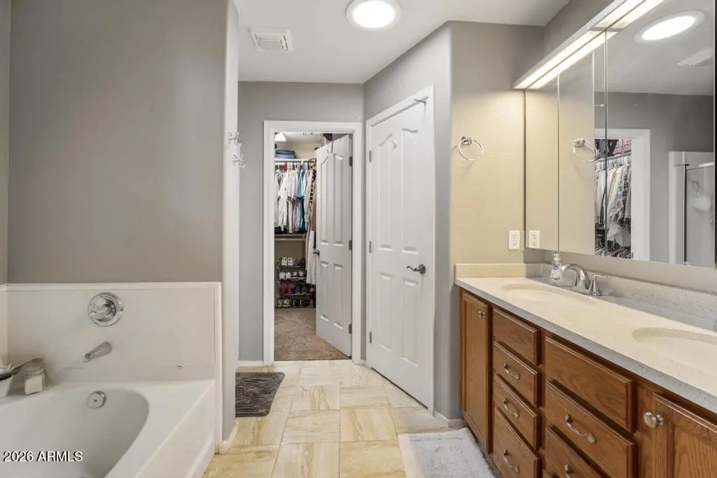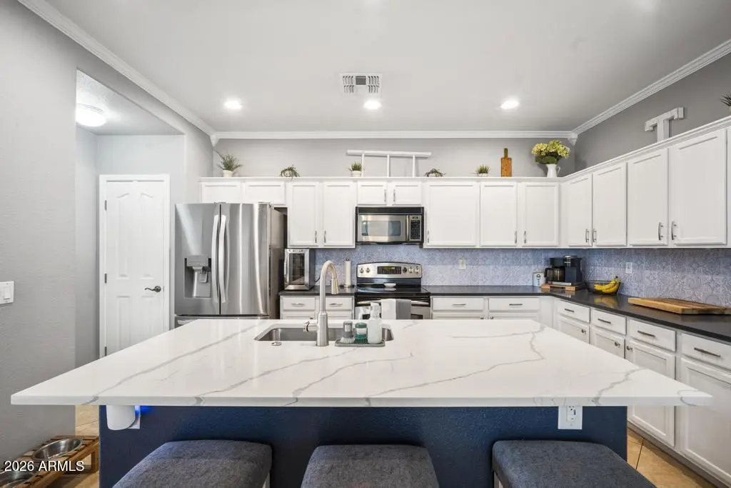 Welcome home to this beautifully updated residence in the heart of Mesa! The newly painted interior enhances the light and bright feel throughout the home. The remodeled kitchen showcases sleek quartz countertops, a stylish backsplash, and new refrigerator and dishwasher, all seamlessly opening to a spacious great room—perfect for everyday living and entertaining alike. The inviting living area features a mounted Samsung TV, Bose surround sound and is a comfortable space to relax or host guests. All bedrooms are generously sized and located upstairs, offering privacy and functionality. The primary suite is a true retreat, complete with a large walk-in closet and an ensuite bathroom featuring dual sinks, a separate soaking tub and walk-in shower, and a private toilet room. Step outside