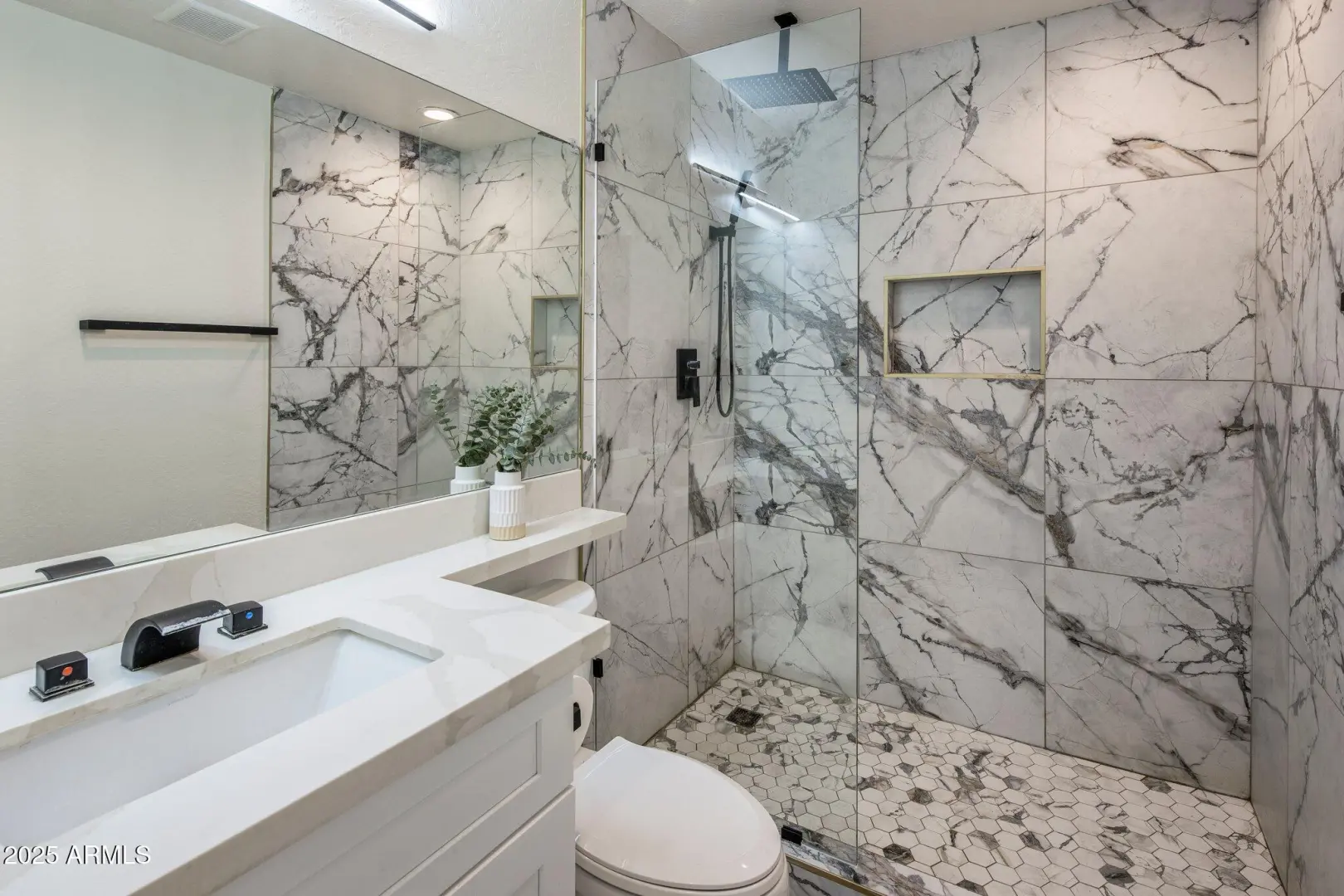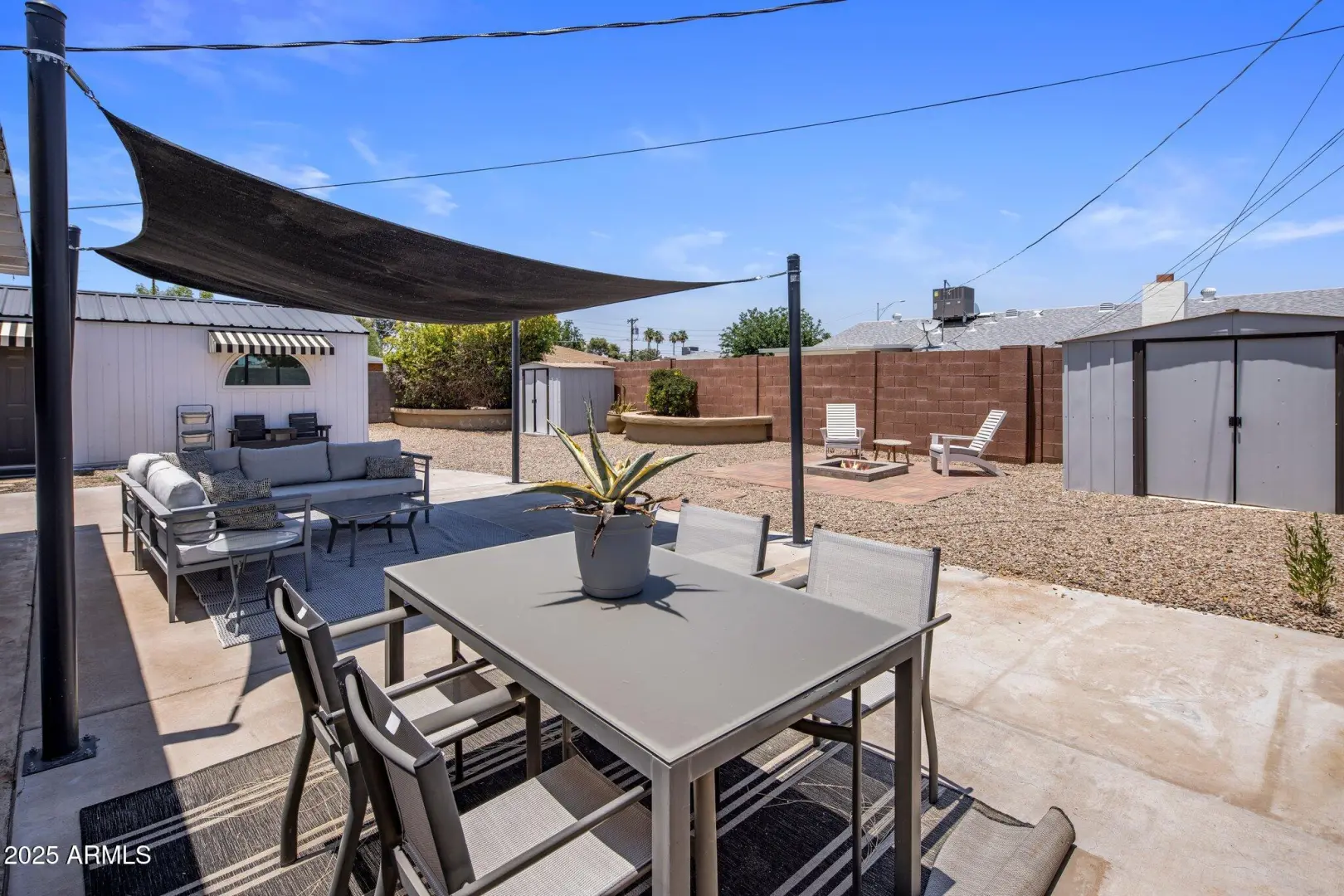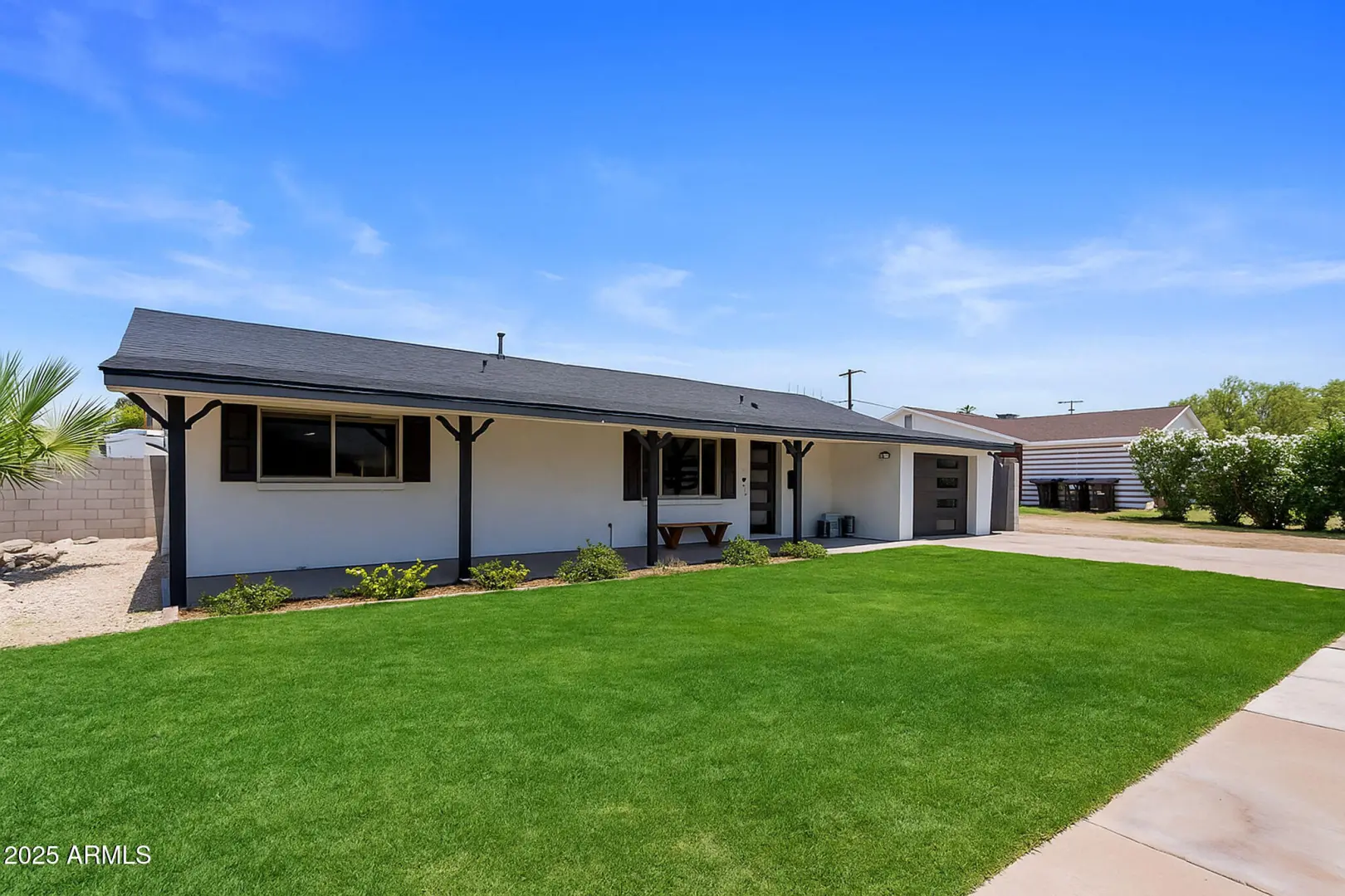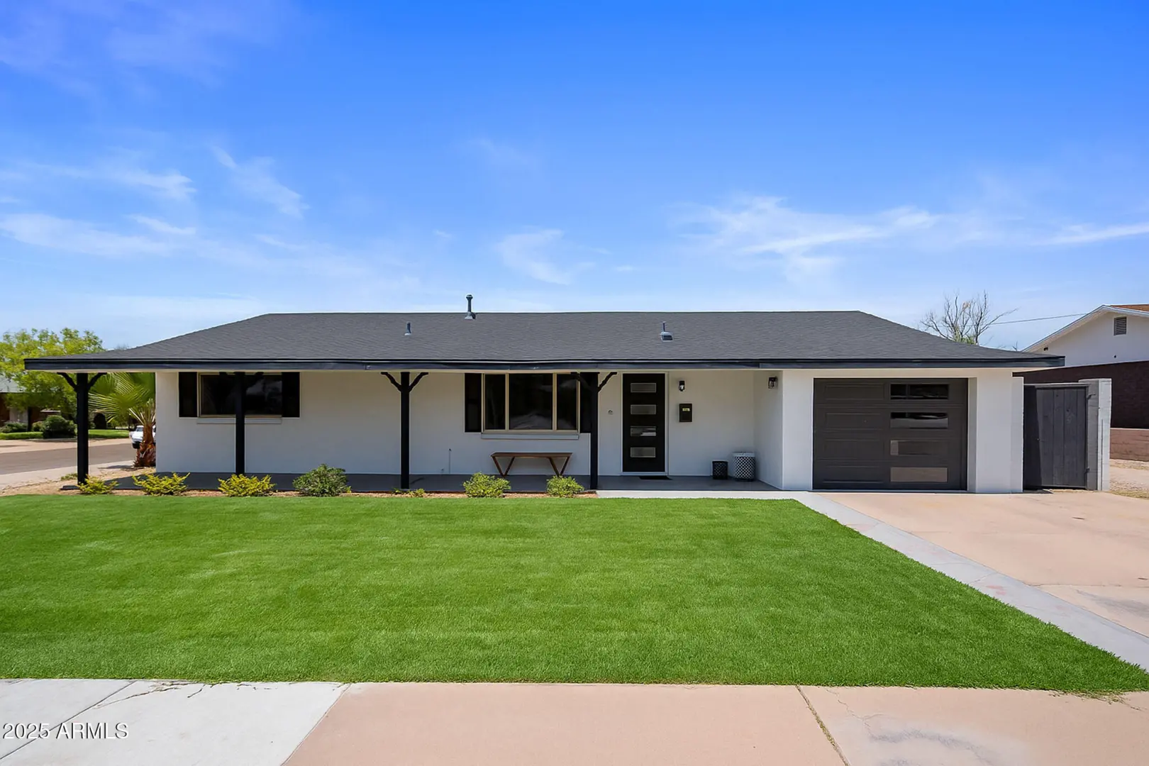 Welcome to this beautifully renovated unfurnished modern ranch-style home with detached casita/ADU offering a fresh take on stylish living in the heart of Scottsdale. With its updated interior & thoughtful layout, this home delivers turnkey convenience with designer touches throughout - perfect for elevated & functional living. Step inside to an open-concept single level floor plan filled with natural light & warm wide plank luxury vinyl flooring that flows seamlessly throughout the main living areas. The heart of the home is the stunning chef's kitchen, showcasing a waterfall-edge quartz island, sleek white shaker cabinetry, modern gold hardware & high-end stainless-steel appliances, including a gas range. A farmhouse apron sink & herringbone tile backsplash add just the right