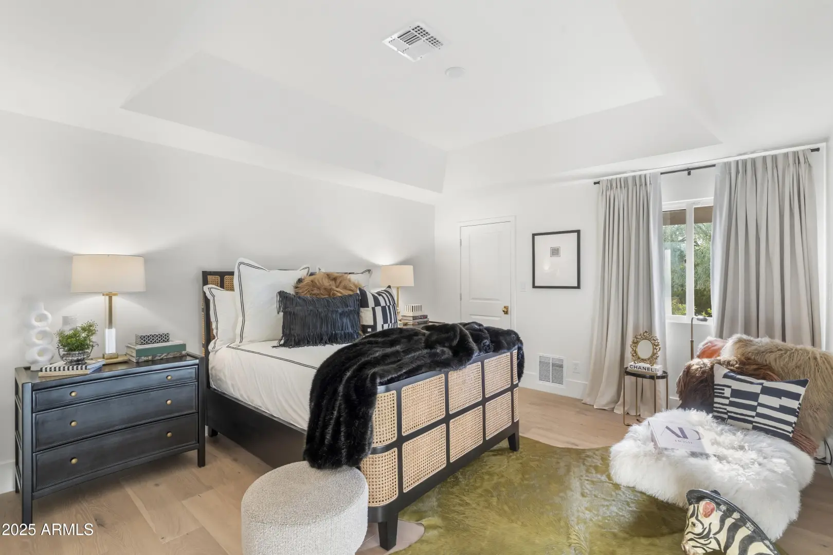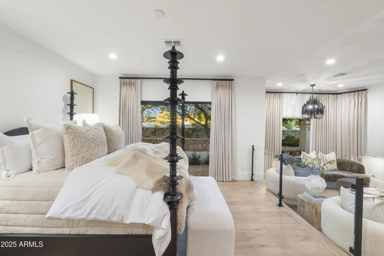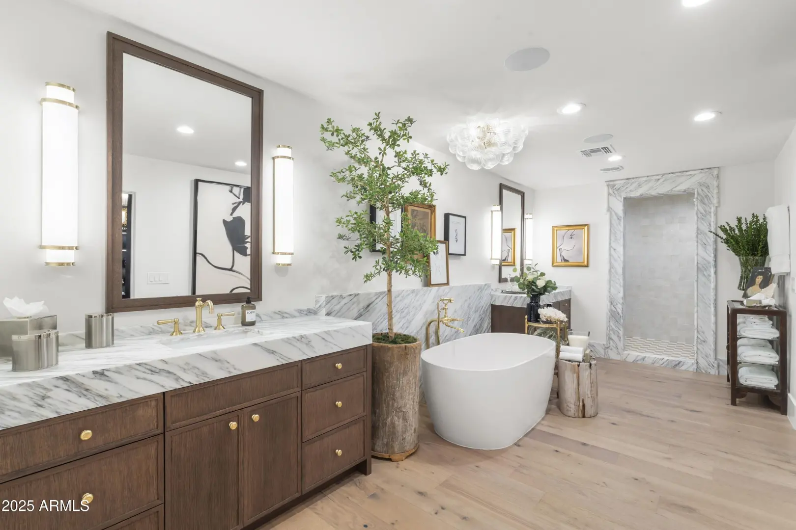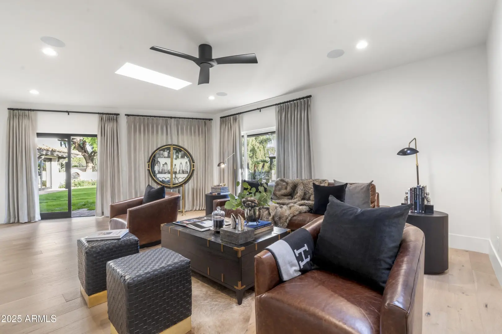 Composed with a curator's eye, Casa de Tesoros layers artisanal materials and tailored moments: bespoke cabinetry wrapped in Taj Mahal quartz, countertops, backsplash, even the window surround, frames a Wolf double range and Sub-Zero refrigeration. The $1.2M reimagining by Curated Design | Lindzey Lawler underscores the home's central idea: distinction over sameness, craft over trends. Beyond the windows, the backyard reads like a private resort. Lush, layered landscaping softens the desert edge while framing uninterrupted golf-course and mountain vistas. A shimmering pool anchors the composition, catching the afternoon light like cut stone, with generous decking for lounging and alfresco dining. Thoughtful planting palettes of textural greens, sculptural succulents, and seasonal