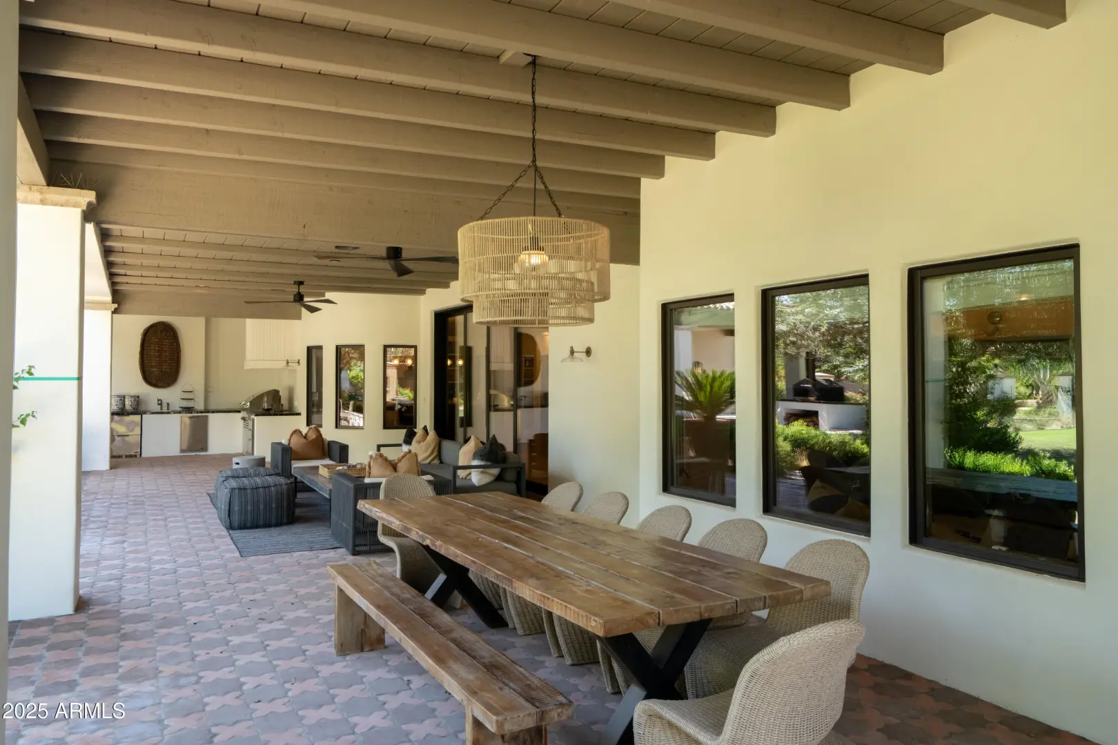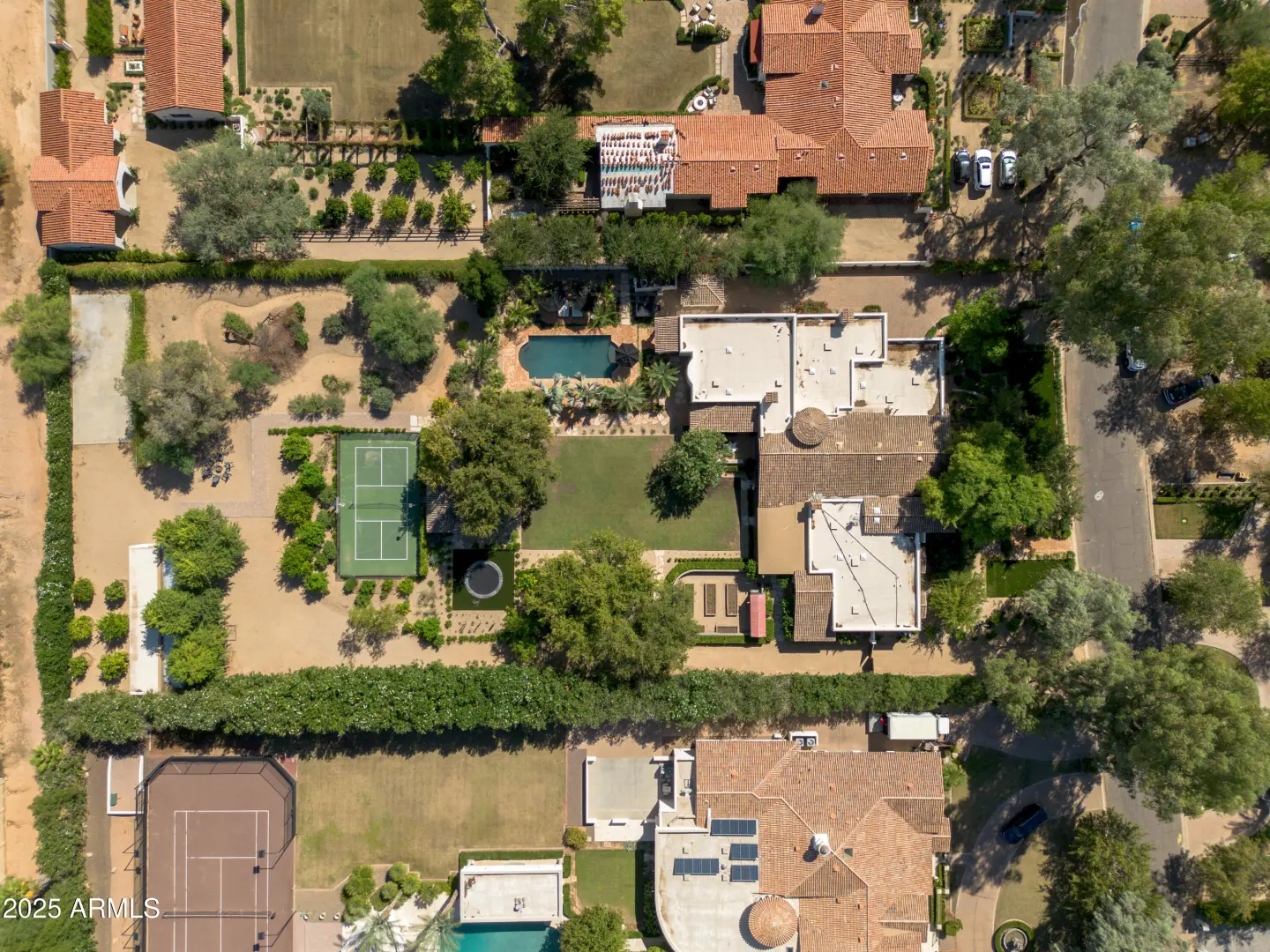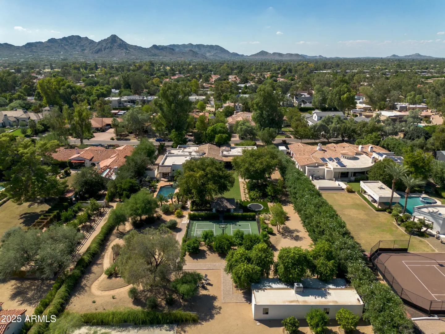 Arguably the finest home on the most sought-after street in the Valley! This is a rare opportunity to own an estate-sized lot in Paradise Valley Farms. Situated on 1.5 acres of lush, park-like grounds, this Santa Barbara-style residence has been completely renovated and perfectly blends timeless architecture with casual elegance. The home offers 5 bedrooms, 5.5 bathrooms, and an open floor plan featuring a stunning country kitchen, family room, and three fireplaces. The split master suite includes a spa-like bath, exercise room with direct pool access, and a private library/study. A separate wing hosts four spacious en suite bedrooms. Distinctive details include brick barrel-vaulted ceilings, expansive front and back patios, and abundant natural light. Outdoors, the property boasts