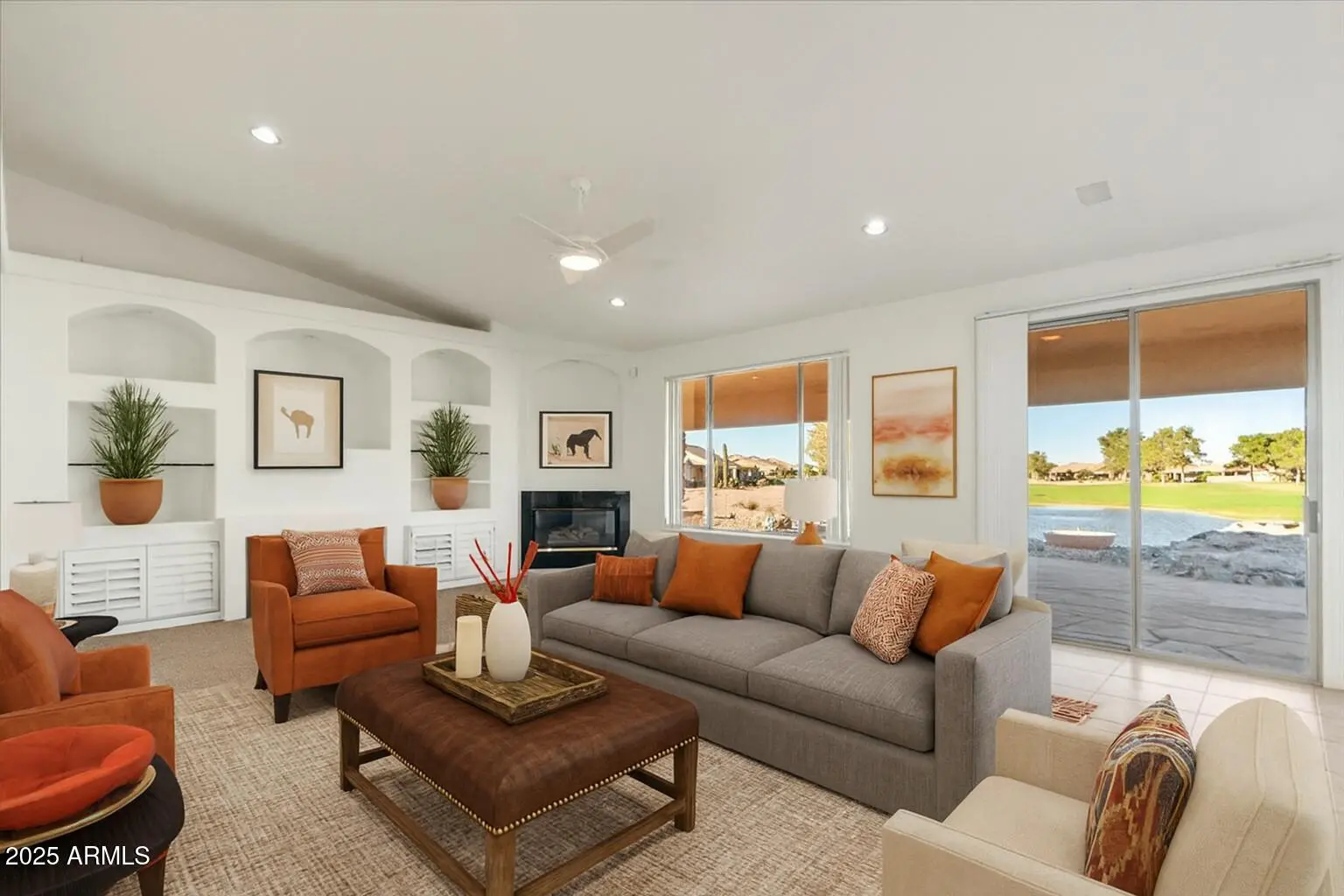 Discover the best of Sun Lakes living in this beautifully refreshed 3-bedroom, 2.5-bath, 2,846 sq ft home perfectly situated on one of the premier golf course and lake view lots in the sought-after Oakwood community of Sun Lakes, AZ. Freshly updated with new carpet and interior paint throughout, this light-filled home offers an inviting blend of comfort and timeless design. Enjoy serene mornings and stunning sunsets from your private patio overlooking the water and fairways, an ideal setting for entertaining or relaxing in true resort style. Inside, the open layout features a spacious great room, formal dining area, and a flexible den or office space. The expansive primary suite provides tranquil lake views, a large walk-in closet, and a spa-like bath.