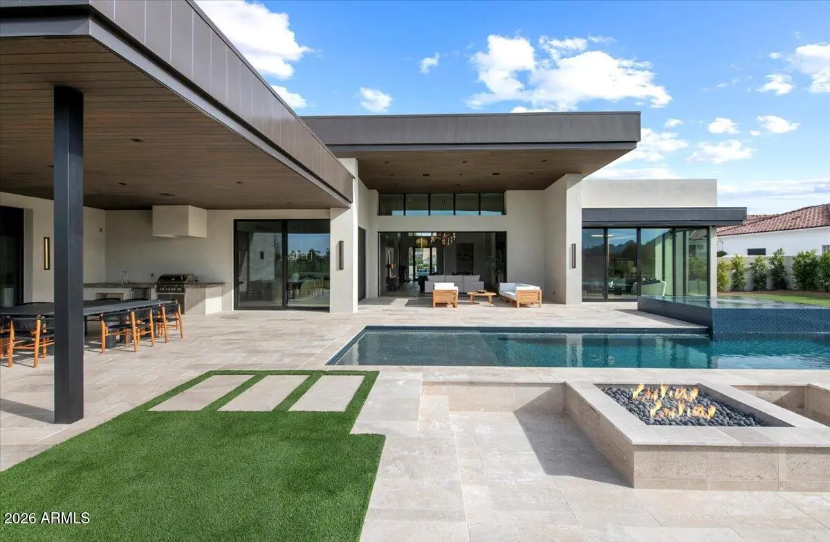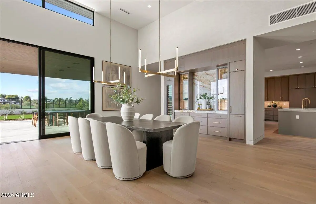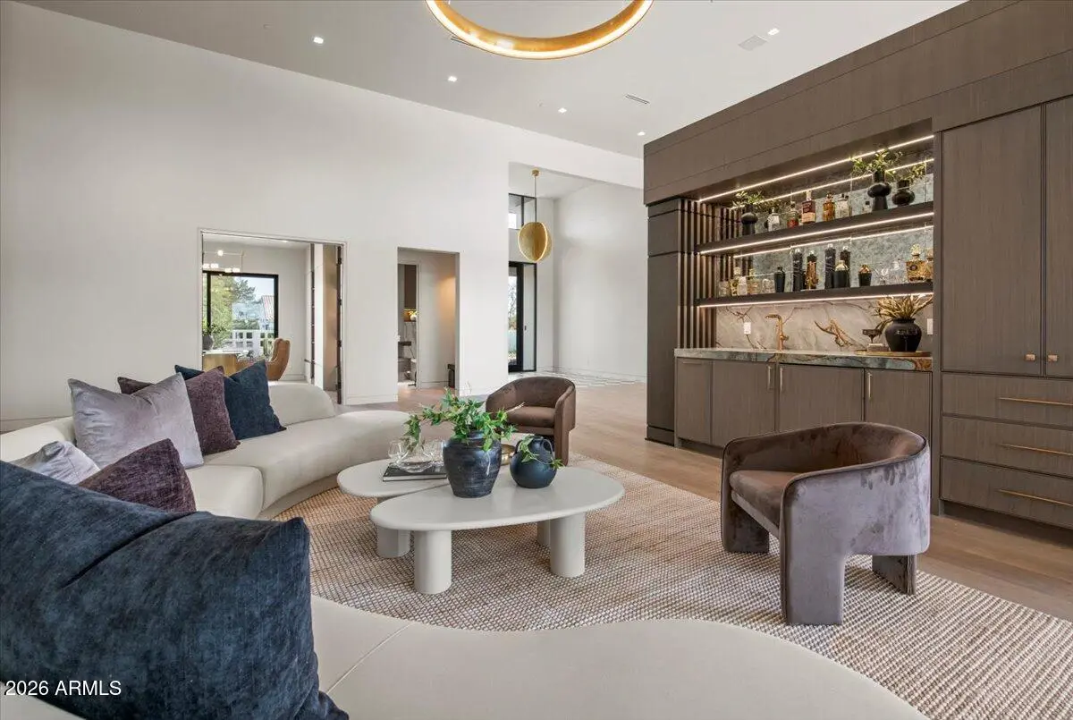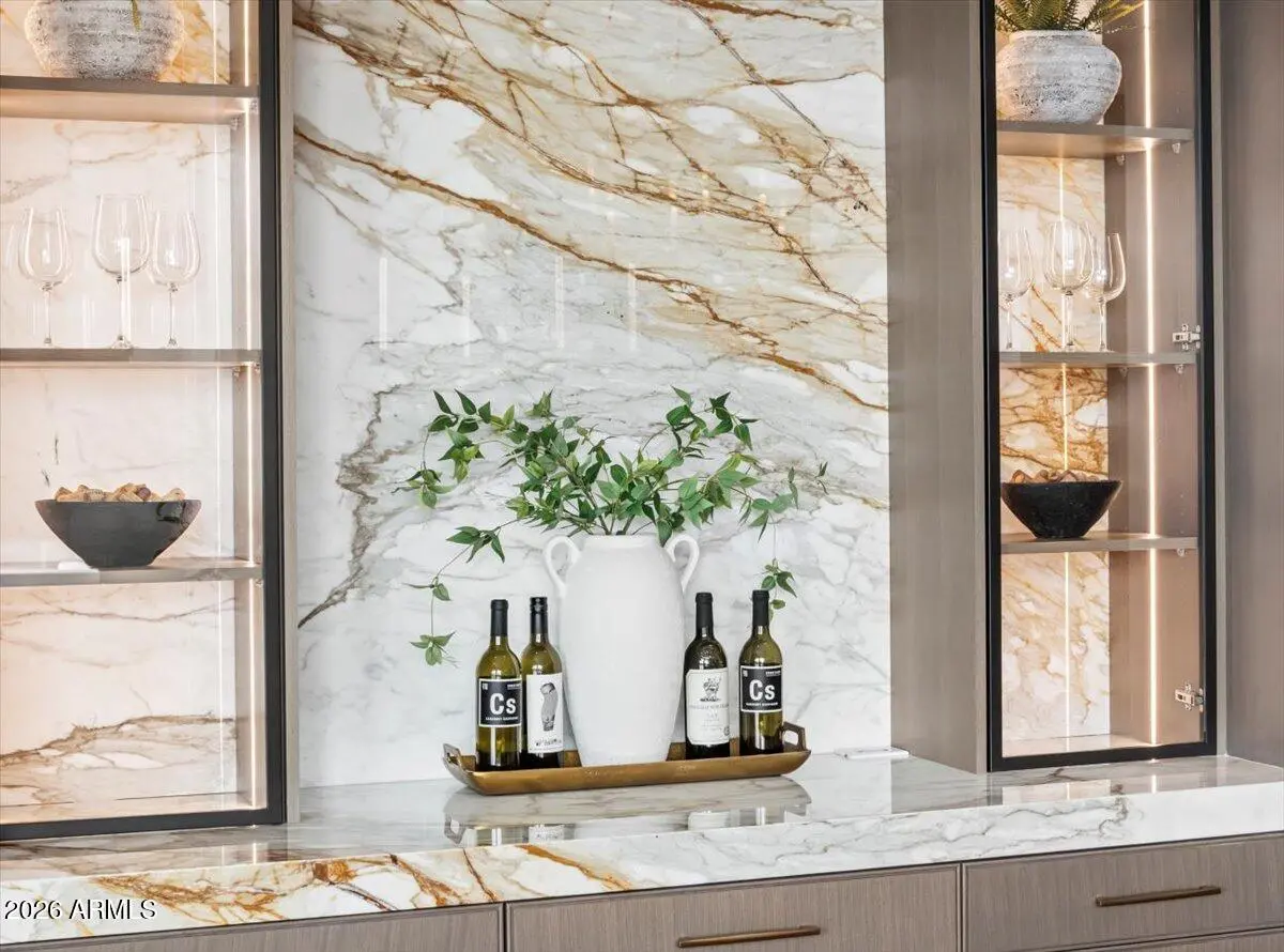 This exceptional custom estate promises to be one of the most stellar new builds in all of Paradise Valley. The modern exterior design is characterized by clean lines, geometric shapes, and a focus on functionality, simple forms, neutral colors and limited materials. The sleek architecture and impressive design combine elegance, comfort, and functionality while incorporating contemporary elements and maintaining a sense of luxury and sophistication. Neutrals provide a timeless backdrop to the 8,000 square feet showpiece allowing other design elements to take center stage as subtle pops of color prevent the space from feeling monotonous. Meticulous attention to detail elevates the overall quality of each room including the impressive kitchen with every imaginable