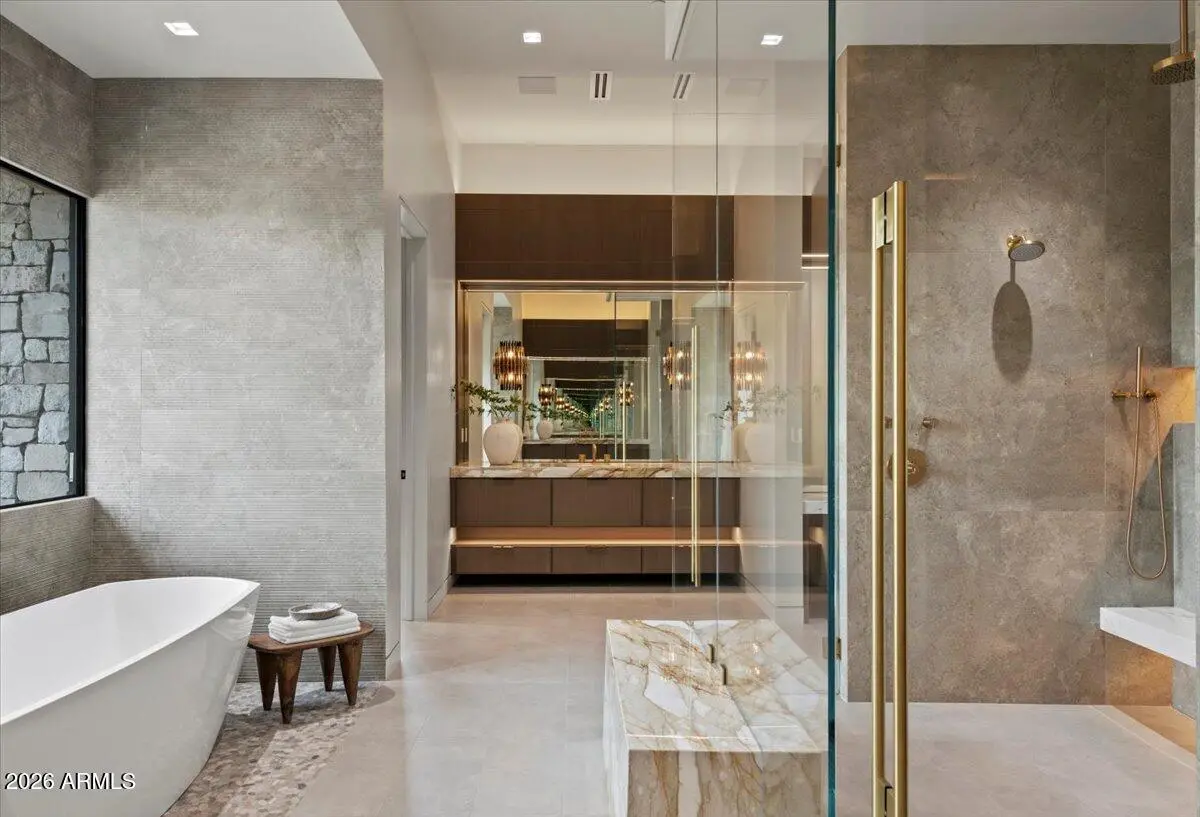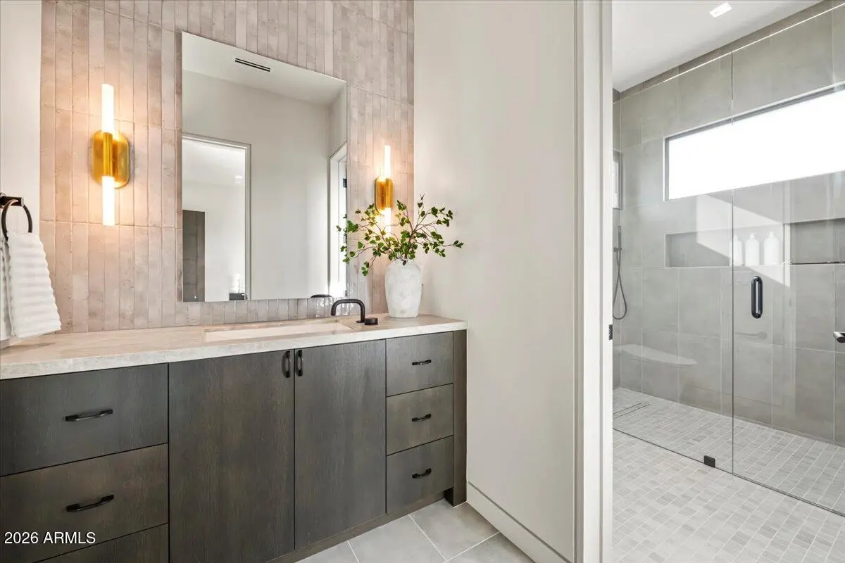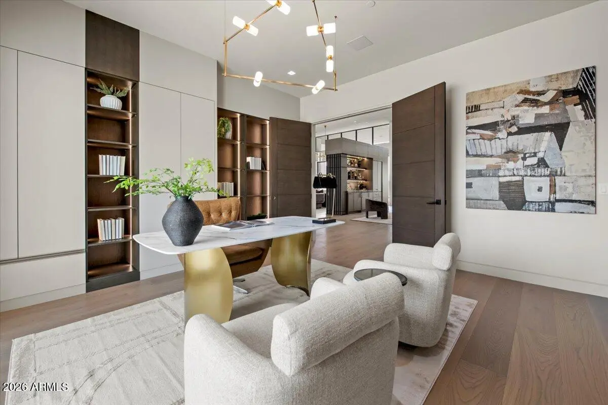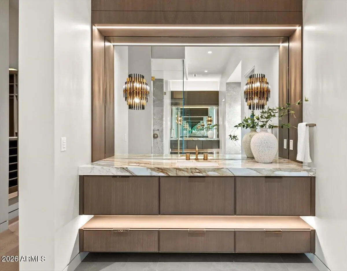This exceptional custom estate promises to be one of the most stellar new builds in all of Paradise Valley. The modern exterior design is characterized by clean lines, geometric shapes, and a focus on functionality, simple forms, neutral colors and limited materials. The sleek architecture and impressive design combine elegance, comfort, and functionality while incorporating contemporary elements and maintaining a sense of luxury and sophistication. Neutrals provide a timeless backdrop to the 8,000 square feet showpiece allowing other design elements to take center stage as subtle pops of color prevent the space from feeling monotonous. Meticulous attention to detail elevates the overall quality of each room including the impressive kitchen with every imaginable